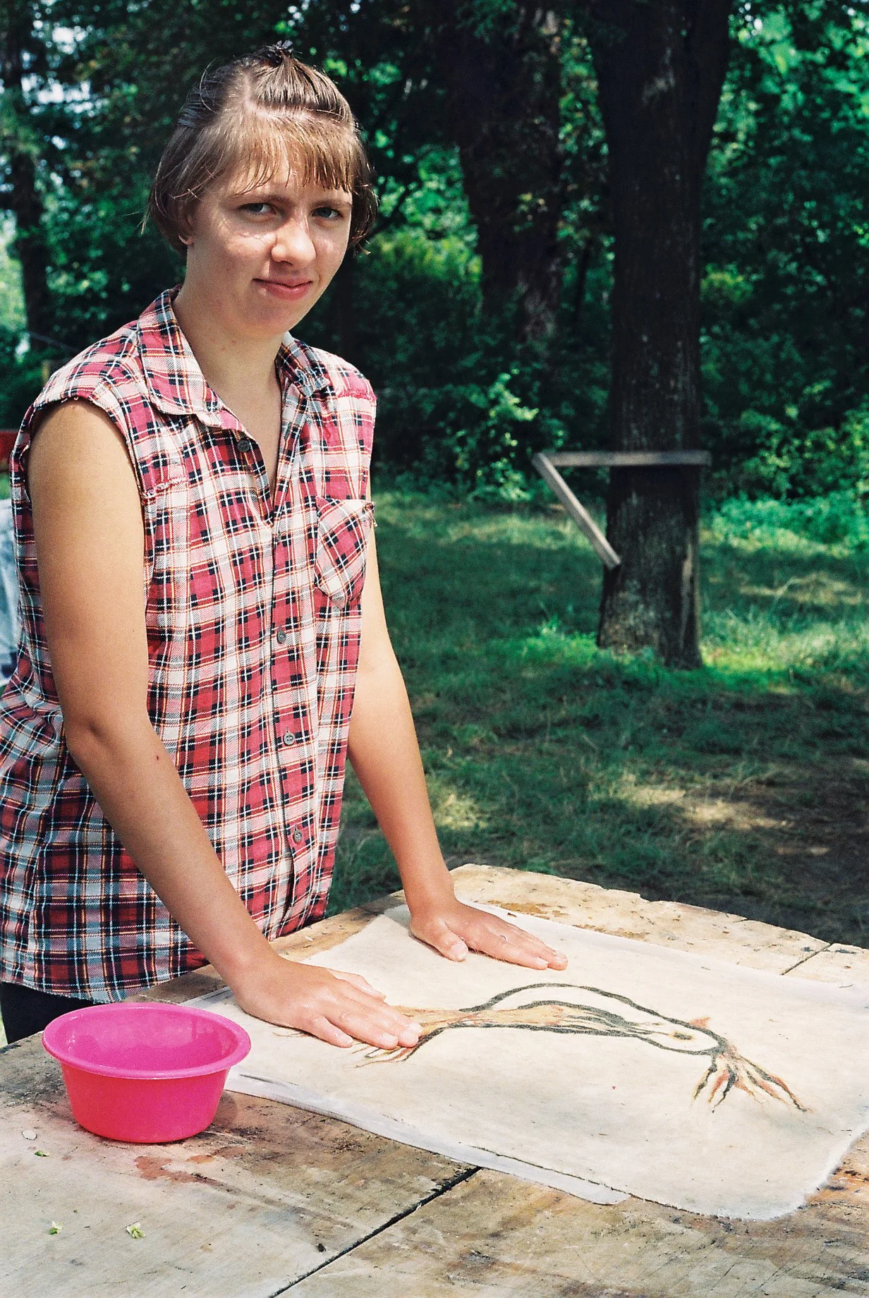 A 22. Temerini Alkotóműhely és Képzőművészeti Tábor résztvevője a Hevér tanyán