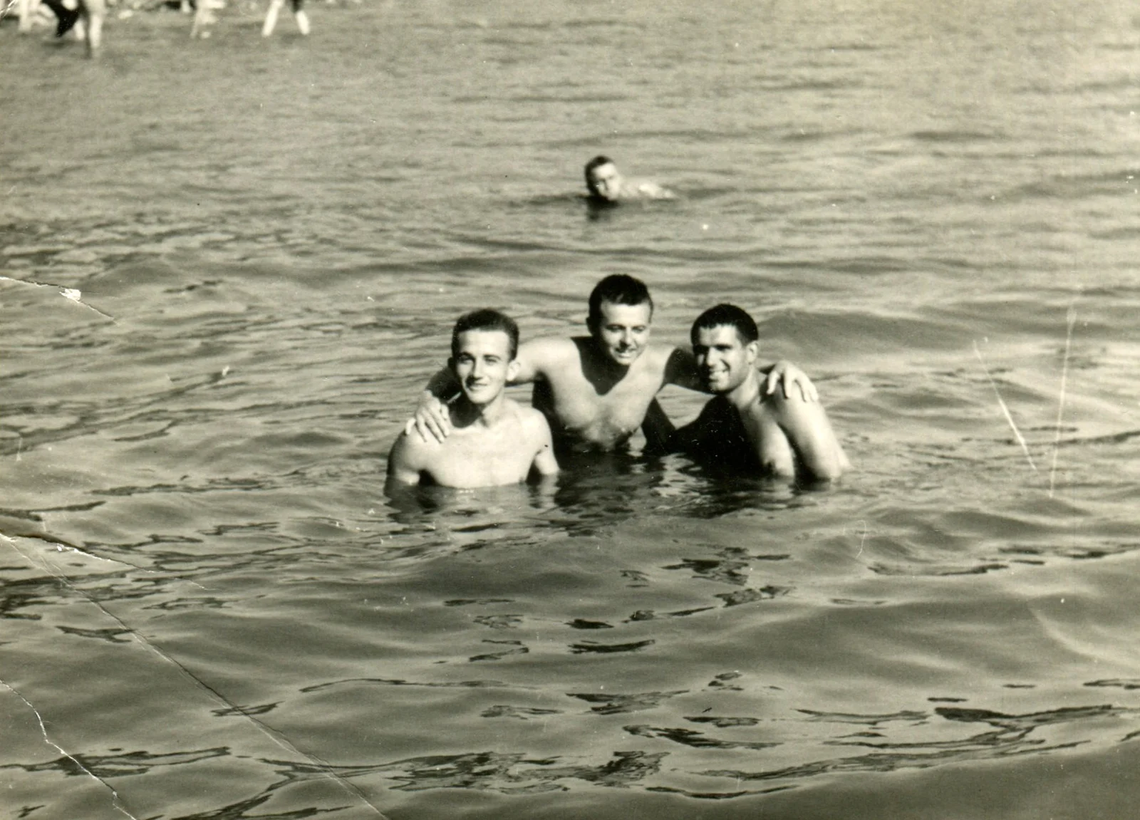Benes József katonatársaival fürdőzik