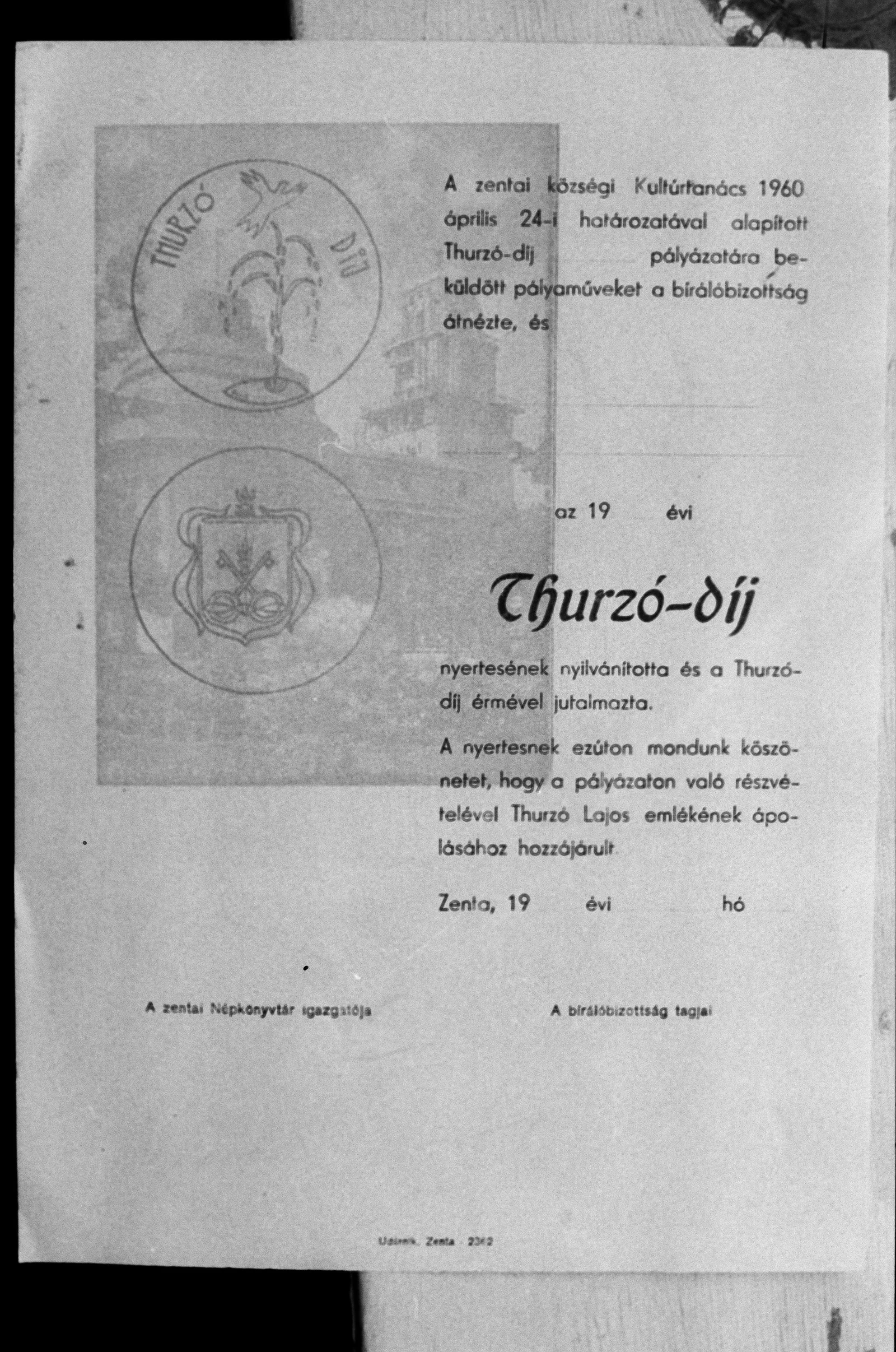Dokumentumok a Thurzó-díjról