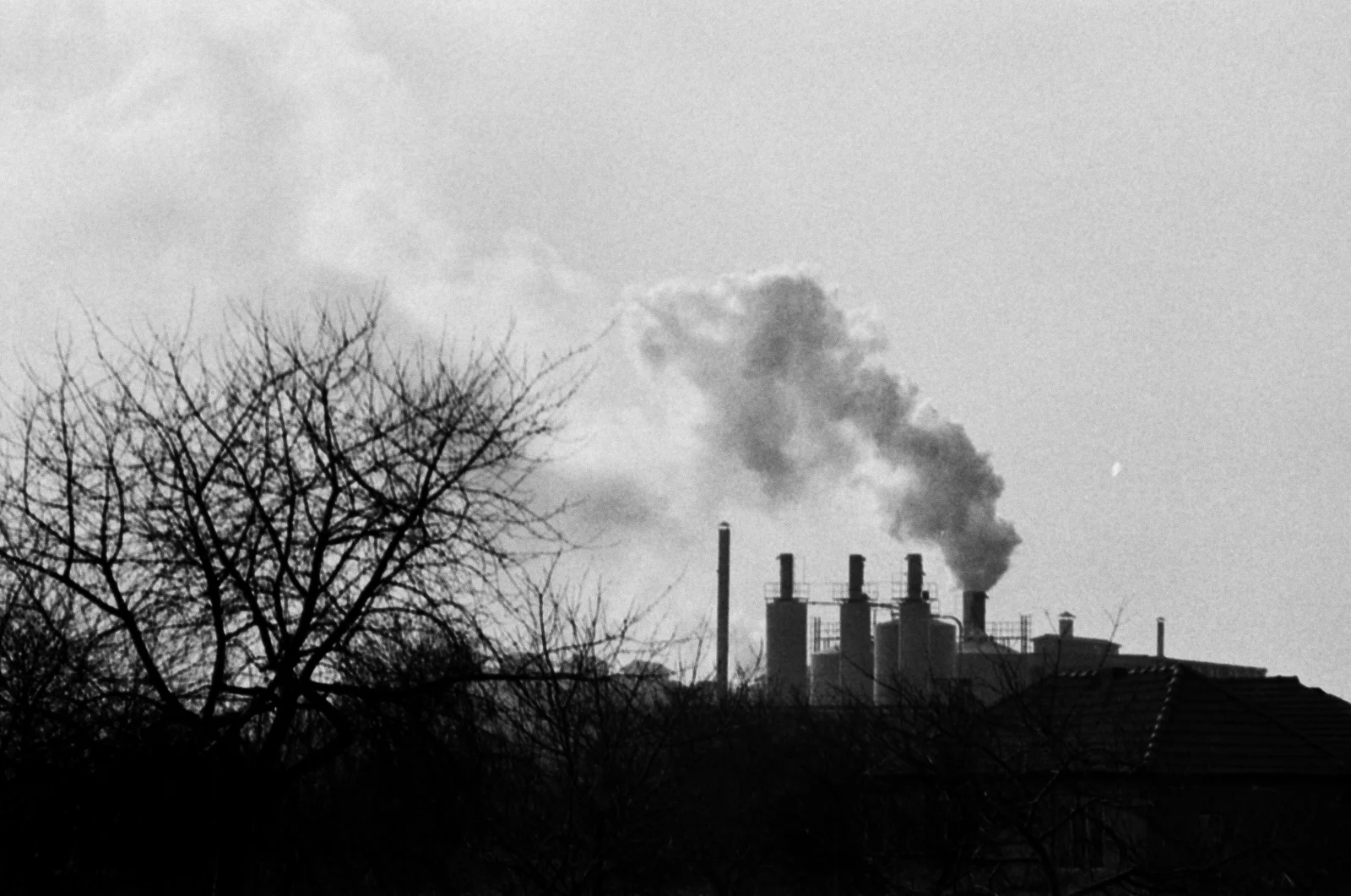 Település a Zorka gyárnál és a gyár füstje