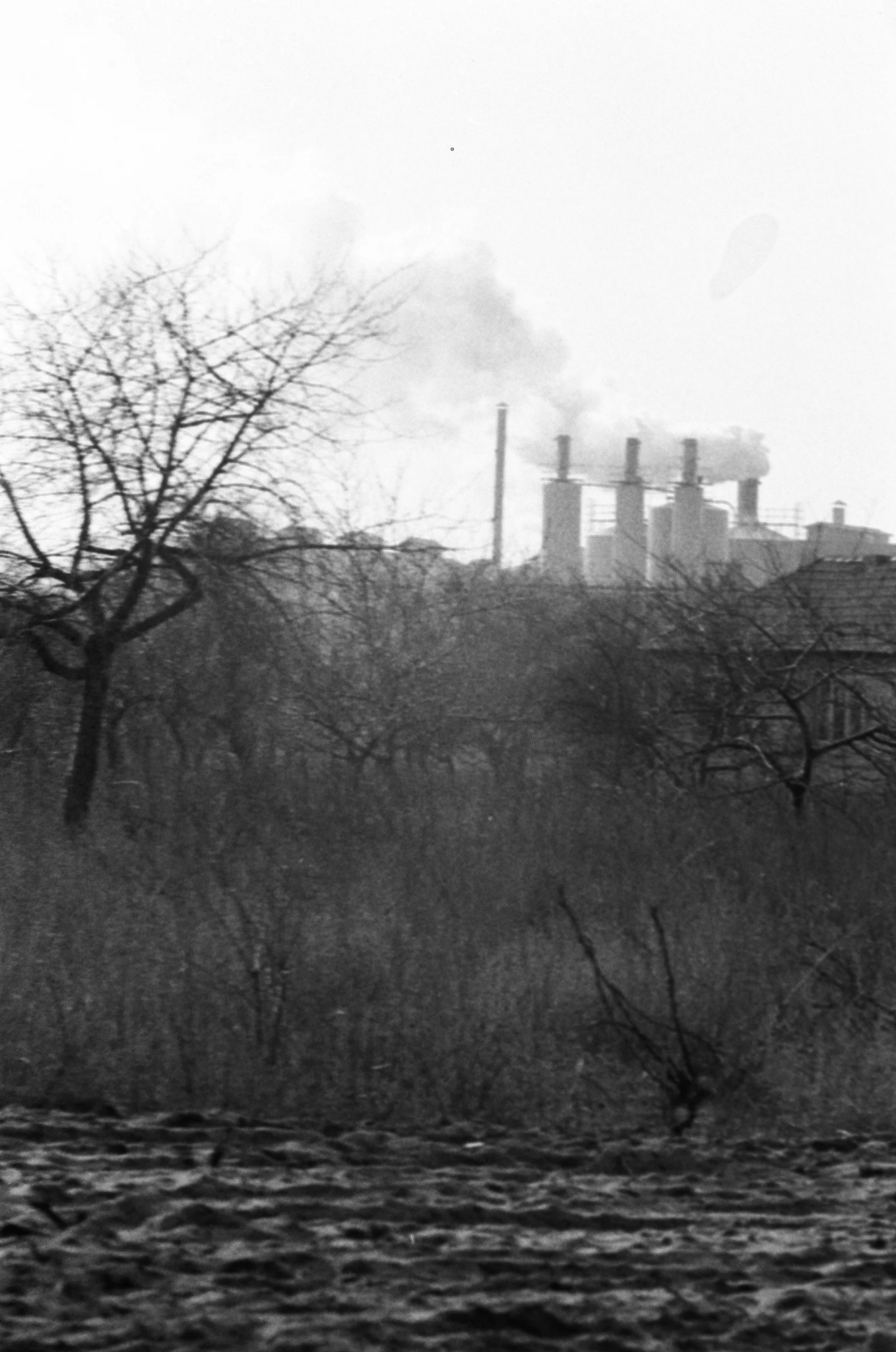 Település a Zorka gyárnál és a gyár füstje