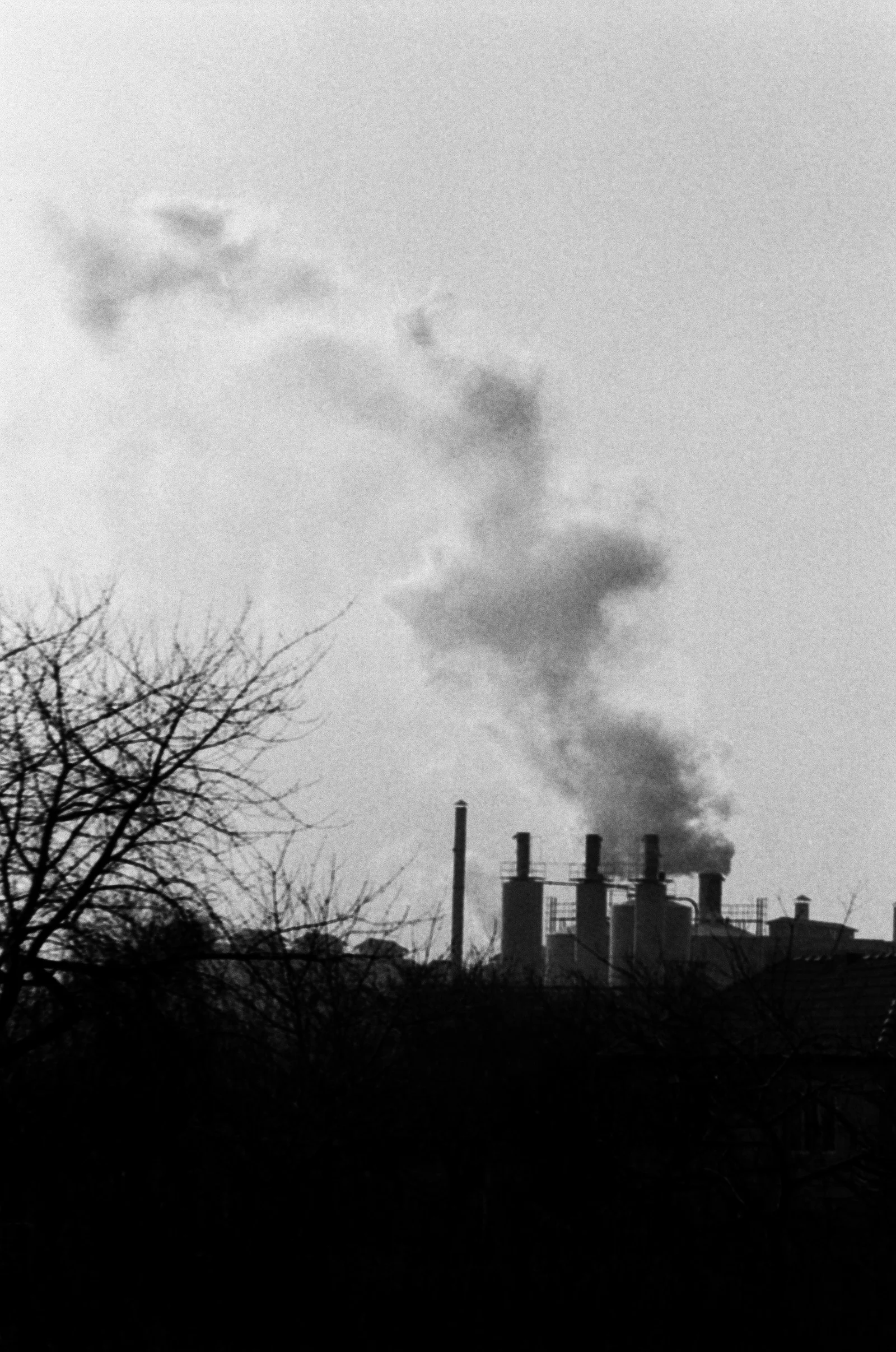 Település a Zorka gyárnál és a gyár füstje