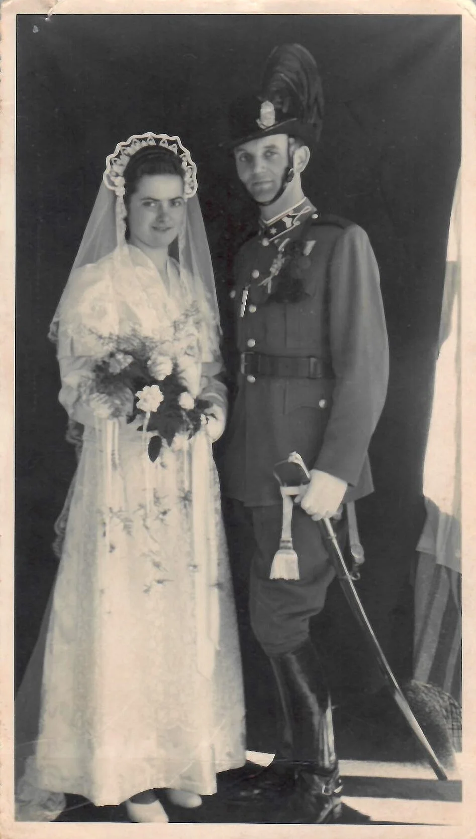 Esküvői fotó – a vőlegény csendőrségi egyenruhában