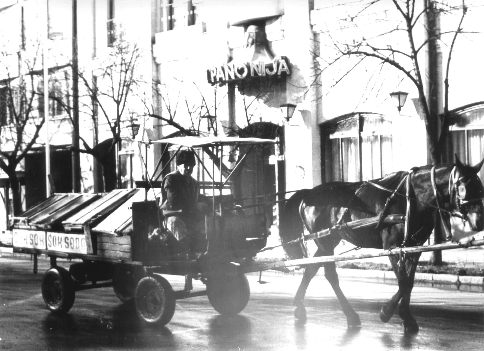 A zentai "Sokk" szódás a Pannonija (Royal) szálloda előtt