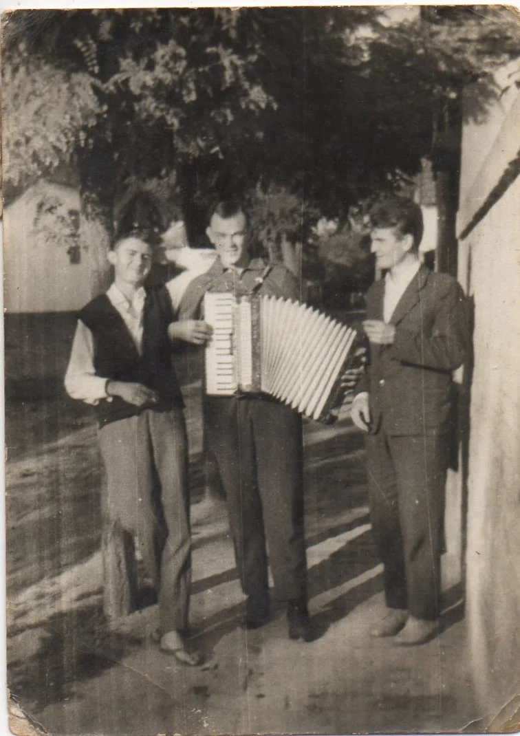 A képen balról jobbra: Januskó Péter, Sinkovits Boldizsár és ismeretlen férfi. A kép Csantavéren, a 4. szőlősor utcában készült, ahol Angyal Valéria élt.