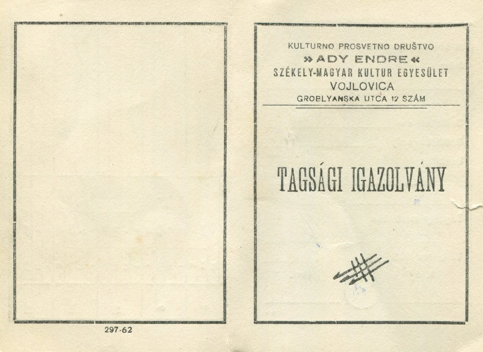 A hertelendyfalvi Ady Endre Székely-Magyar Művelődési Egyesület tagsági könyve