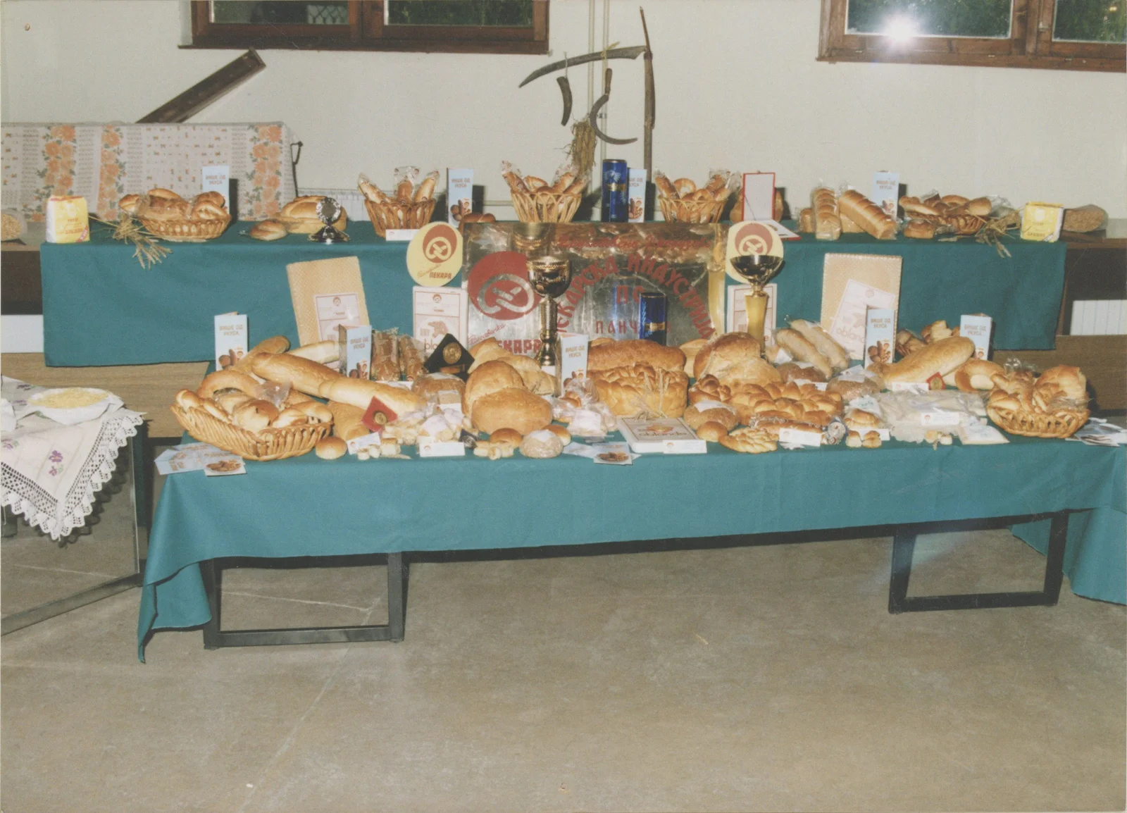 A Hertelendyfalvi Helyi Közösség Tanácsa, a Szlovák Gyetván Művelődési - Oktatási Egyesület és a Tamási Áron Székely-Magyar Művelődési Egyesület közösen szervezték meg az Arató ünnepséget. A képen a lisztből készült sütemények kiállítása látható, a művelődési műsor előtt.