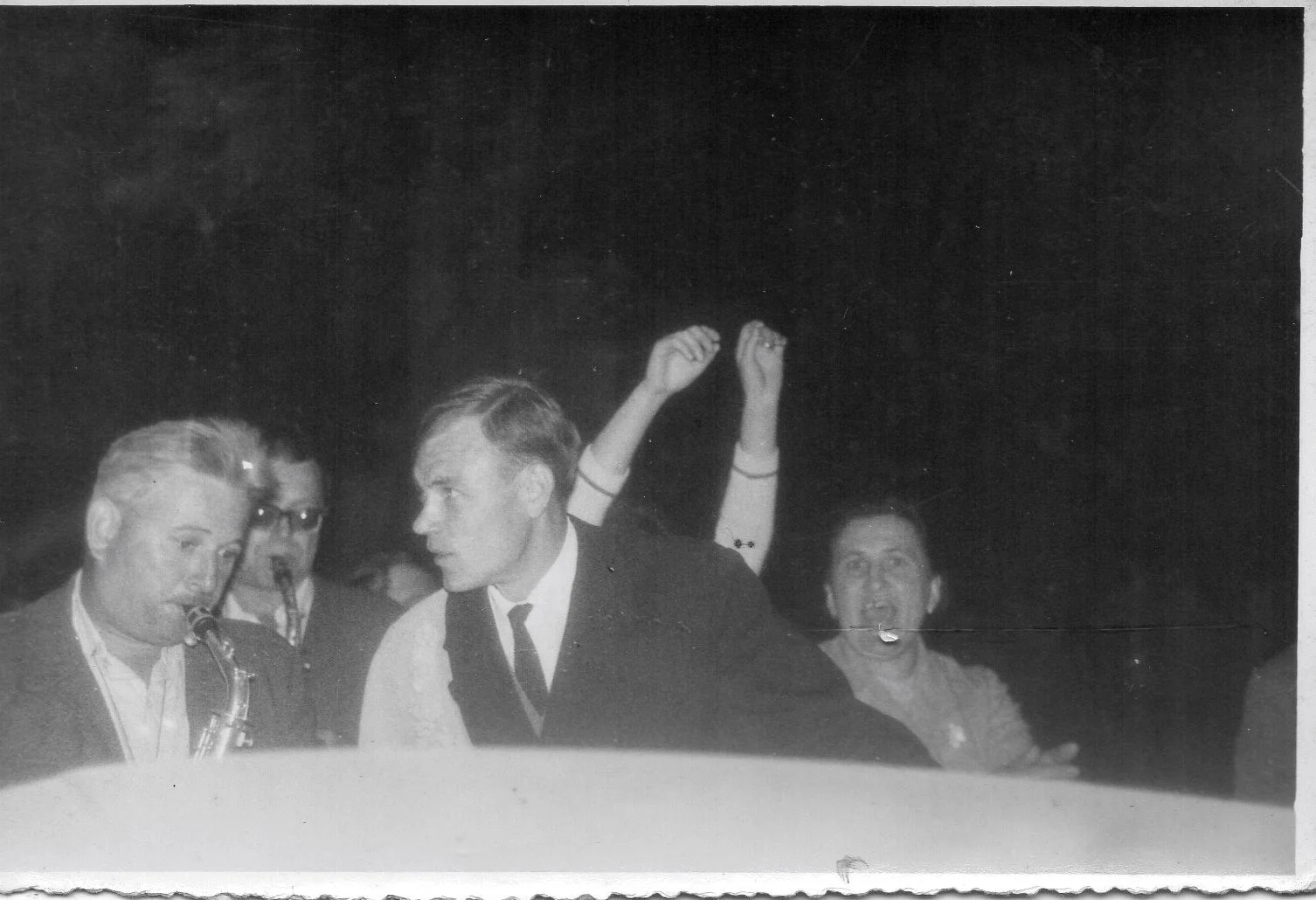 A képen a vőfély, Sinkovits Boldizsár látható, mögötte az örömanya mulat.