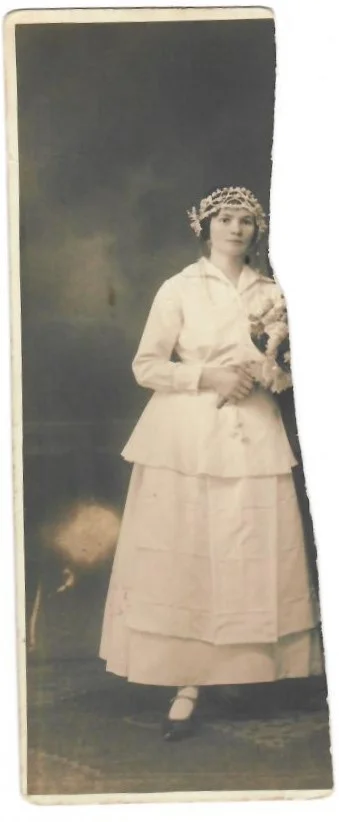 Darabos szül. Kovács Mária szabadkai bunyevác nő volt. A család nevét magyarosították, ezt pontosan nem tudni, miért. Anyagi helyzetükről nincs információ, de mivel a férje egyszerű béres volt, ezért nem lehettek nagyon jól szituáltak. Pontosan négyen voltak lánytestvérek, de csak hárman élték túl a gyerekkort, mert az egyikük szerelmi bánatból zsírszódát ivott és belehalt a mérgezésbe. Azt, hogy Magdolna miért pont egy bajmoki magyar férfihez ment hozzá azt nem tudni, sem a megismerkedésük pontos adatait. Annyi történet fennmaradt a családban, hogy az 1920-as években a bunyevác fiatalok körében úgy zajlott az ismerkedés, hogy valaki házához mentek a fiatalok, ahol harmonika és tambura szólt, és mulatoztak, akik pedig jobban meg szerették volna ismerni egymást, azok elvonultak egy külön szobába beszélgetni. Magdolna és a férje majdnem 30 évesek voltak, amikor összeházasodtak. A képről a vőlegény azért hiányzik, mert egy veszekedés alkalmával egyik a másikát levágta. Négy gyermekük született, a legfiatalabb, az egyetlen fiú gyermekbetegségben halt meg. A lányok közül a legdősebb a kép tulajdonosának édedanyja volt. Magdolna a hetvenes években hunyt el 92 évesen, és annyira hagyománytisztelő volt, hogy haláláig népvisletben járt.