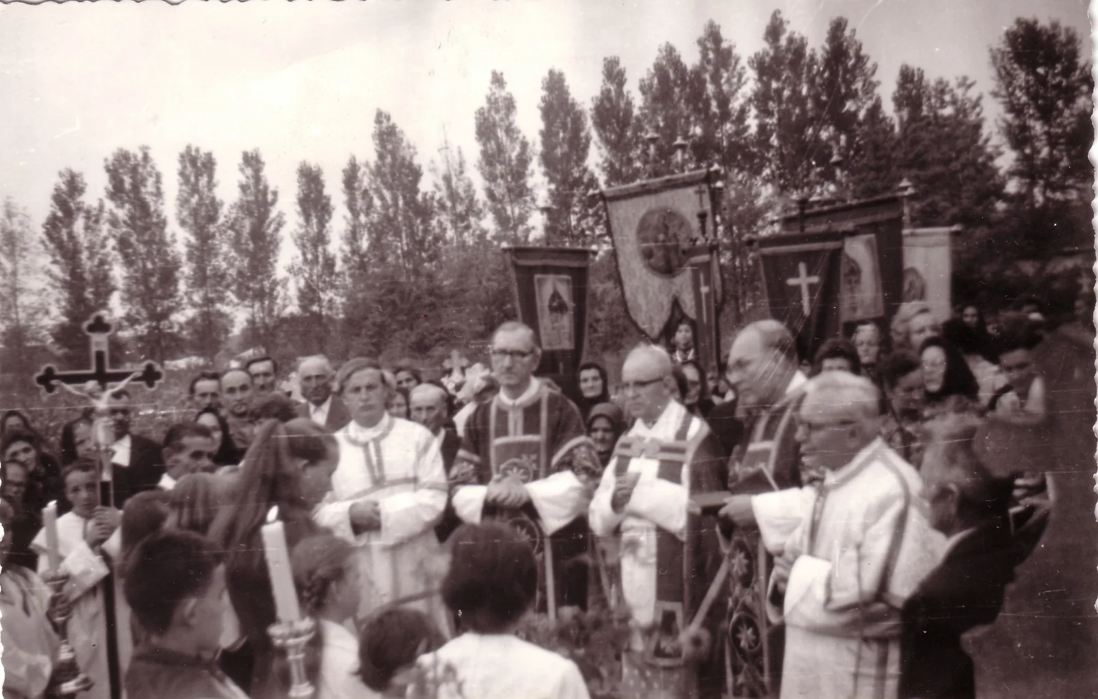 Keresztek felszentelése a temetőben