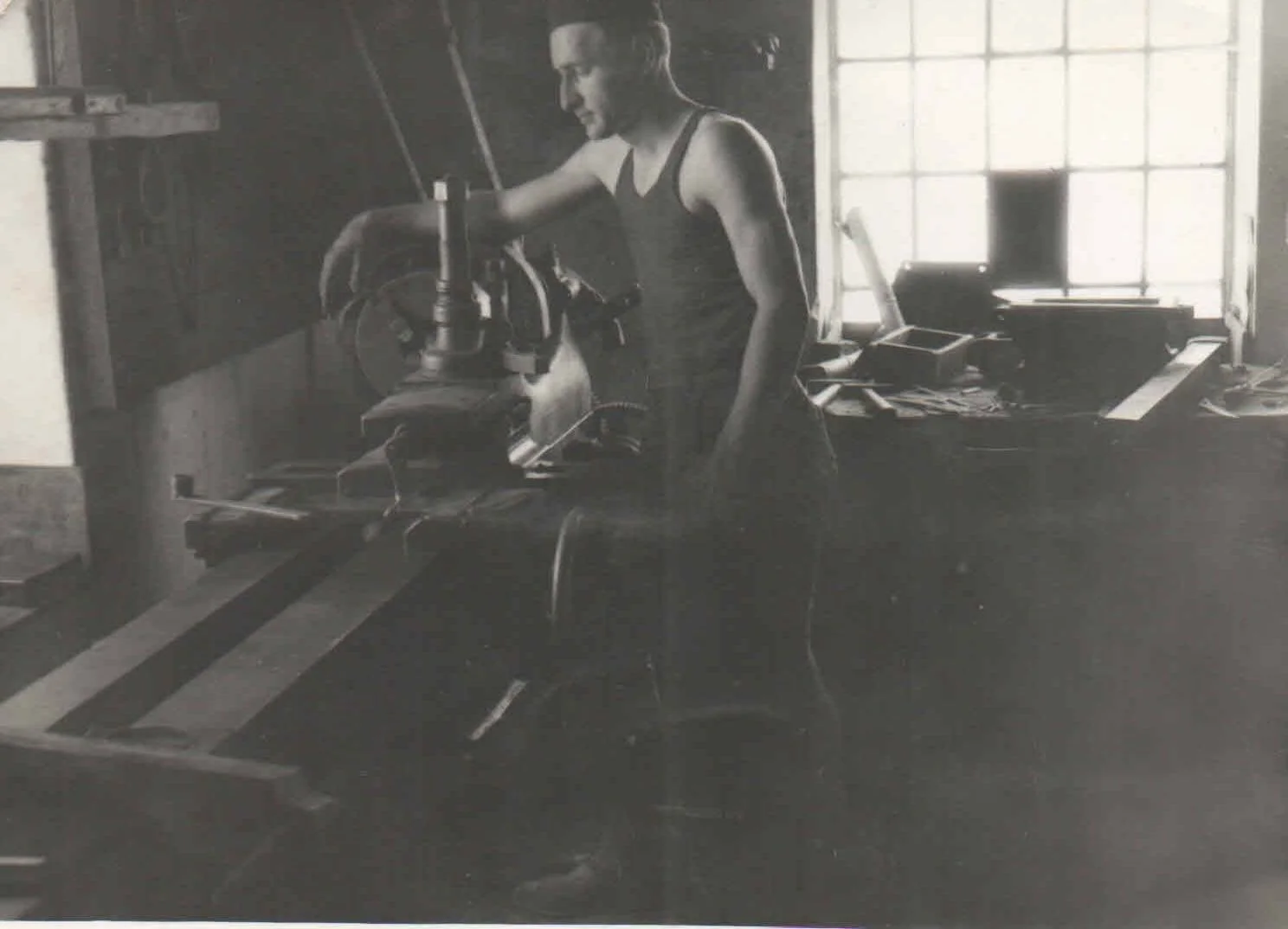 Tary Nándor inasként a műhelyben
