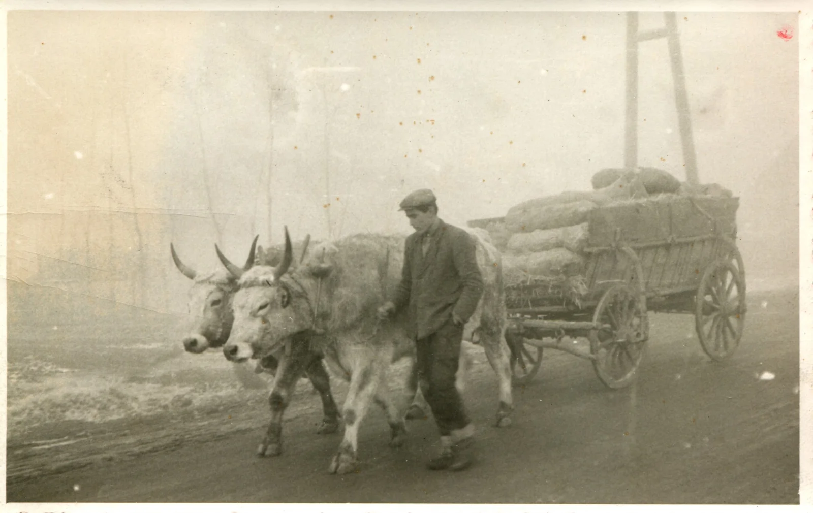 Gazdálkodó fiú ökrös szekérrel