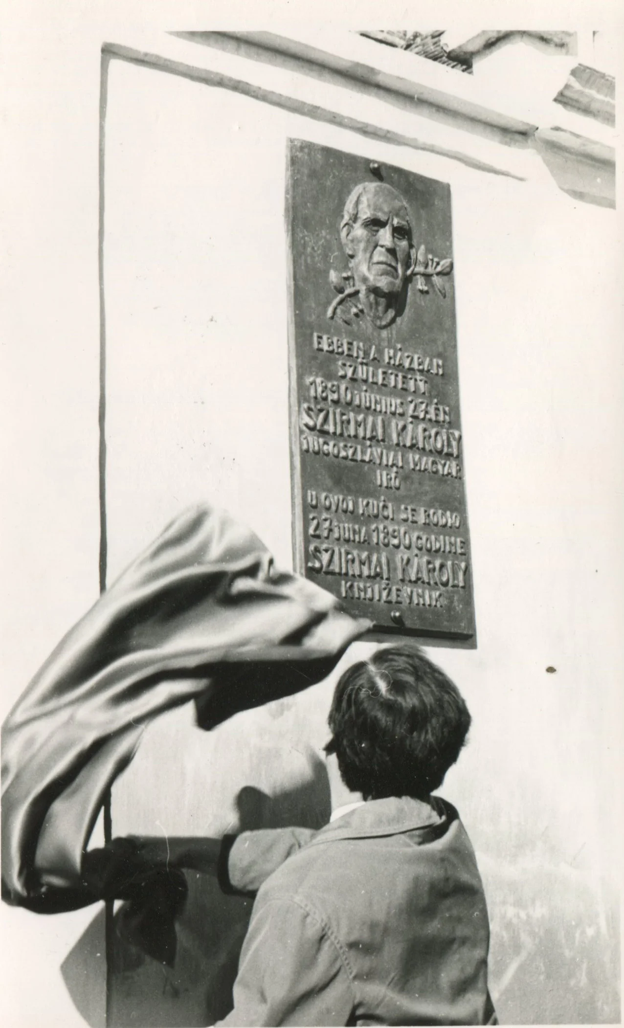 Németh István író leleplezi az emléktáblát Szirmai Károly szülőházán