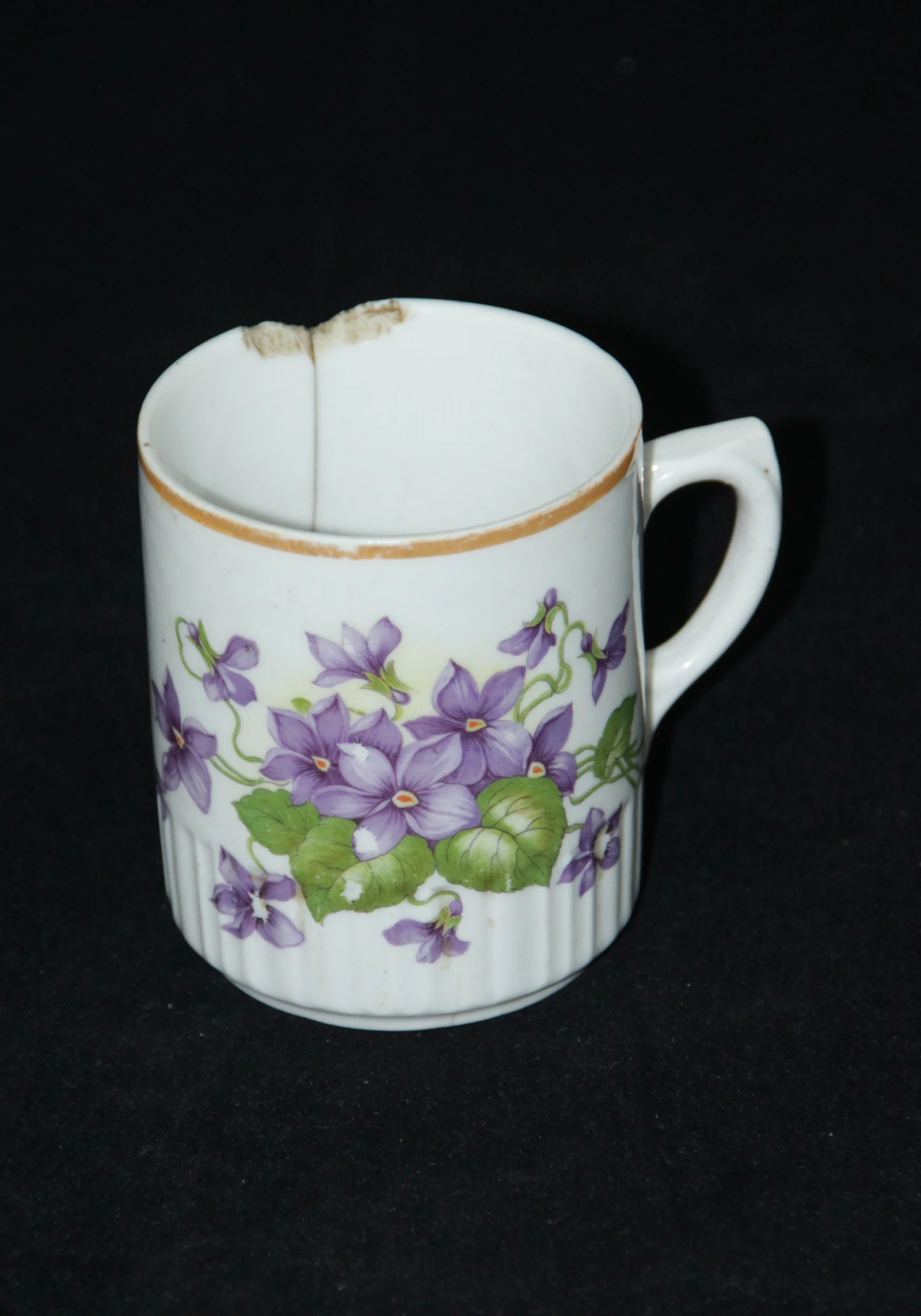 Leírás: Fehér alapon ibolyás mintájú.