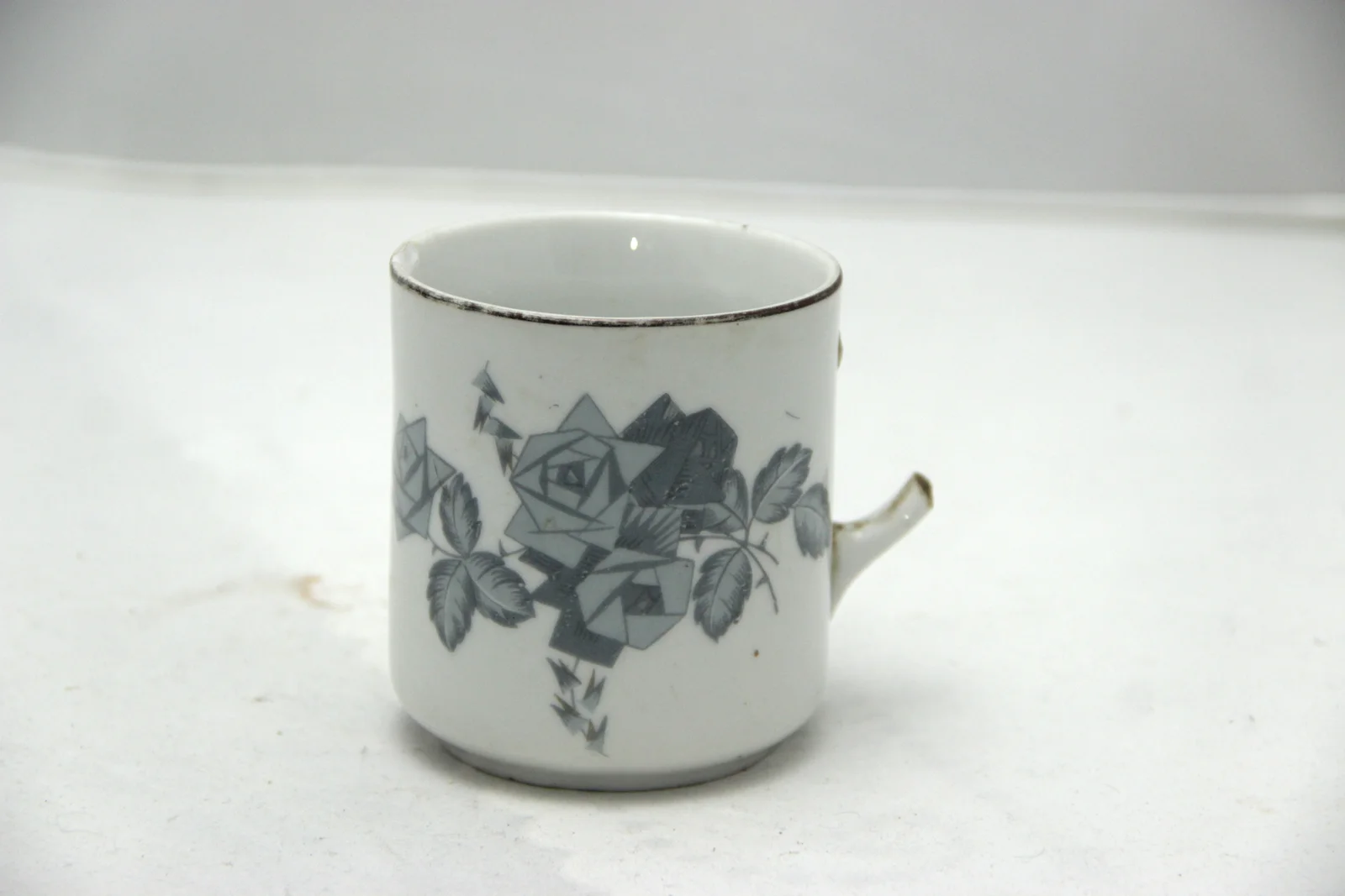 Leírás: Szürke rózsás mintájú. A füle letört. Fenékjegye: "FPM NS"