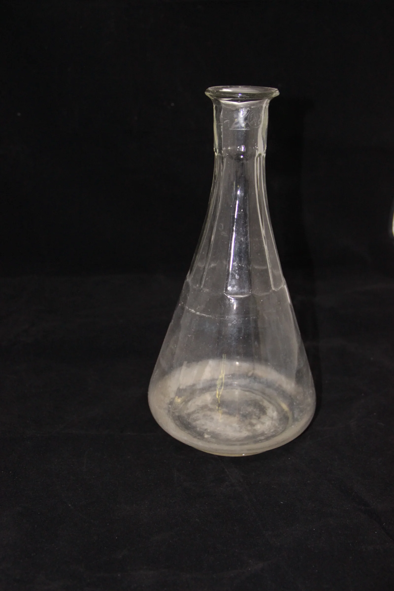 Leírás: Színtelen üveg. A nyak rész sziromszerű bordákkal díszített.