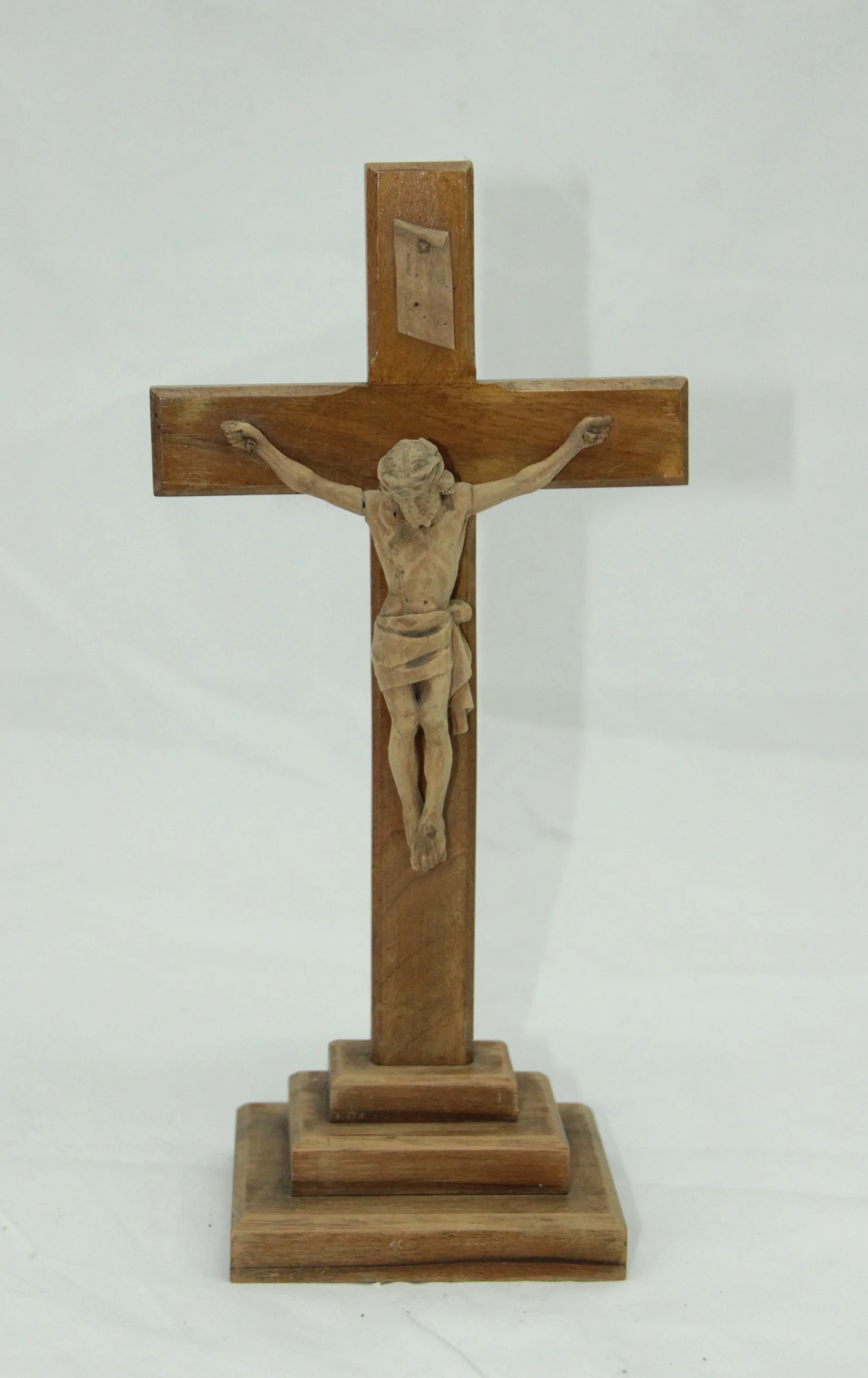 Leírás: Fakerszt fakorpusszal. Az INRI táblácska is fából készült.