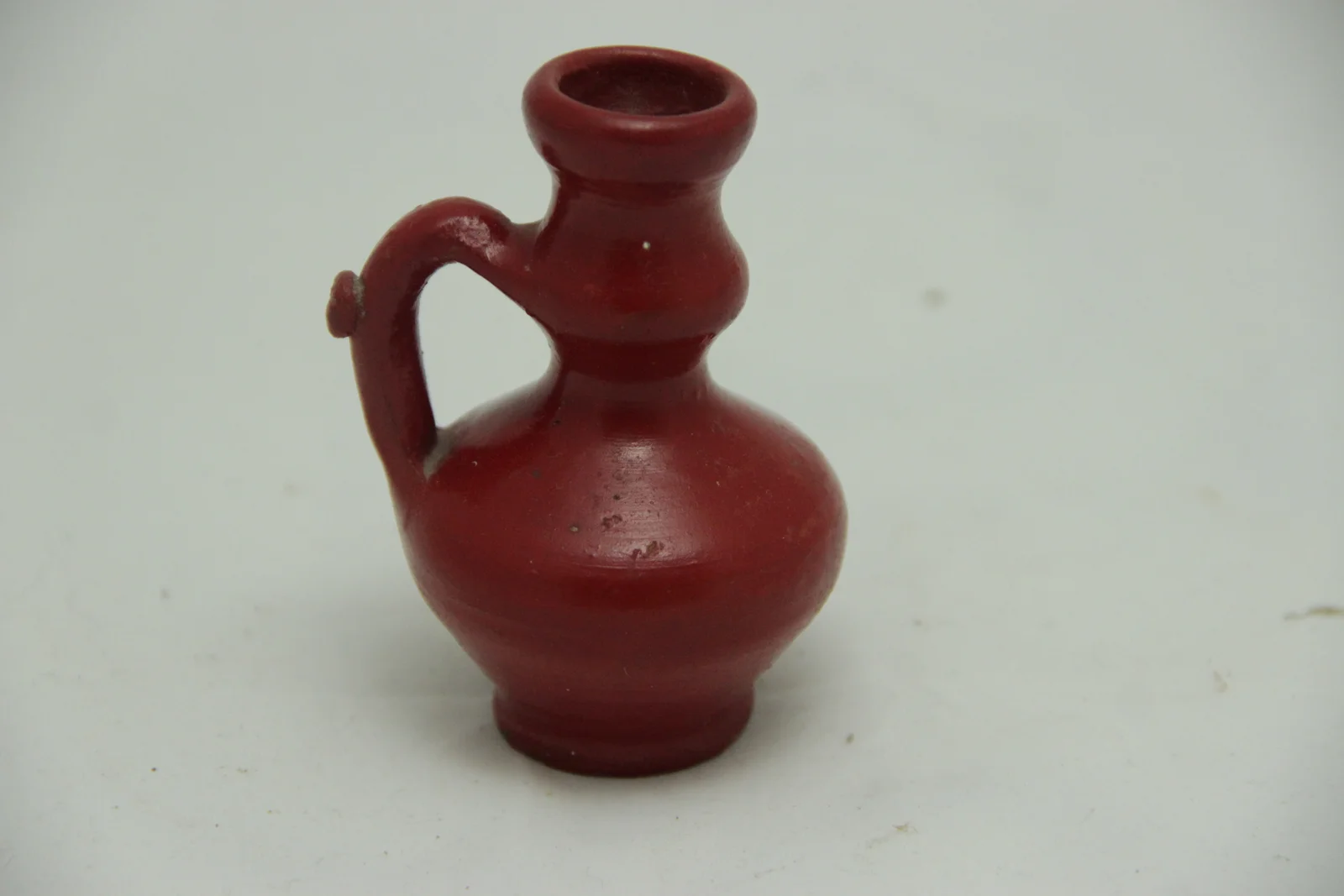 Leírás: Fülén van ivócsűcs, de nem átjárható a lyuk. Pirosra festett. Nincs díszítése.