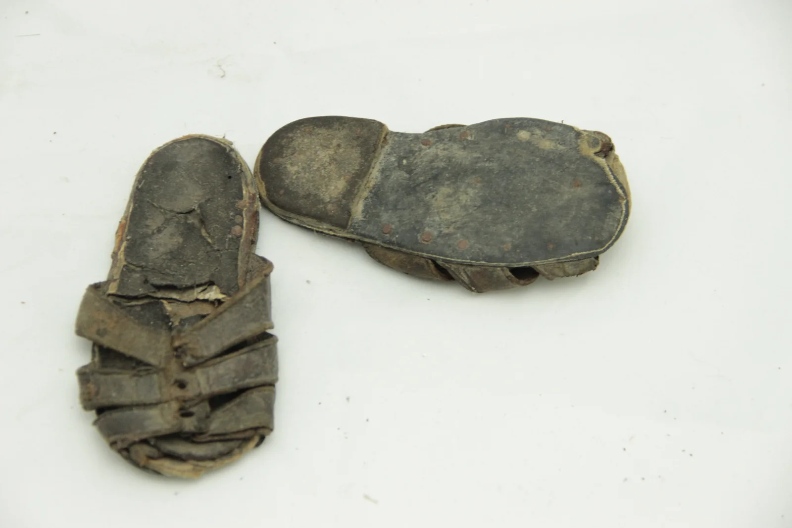 Leírás: Szandálból lett papuccsá átalakítva – még látszik a sarkán az eredeti pánt helye.