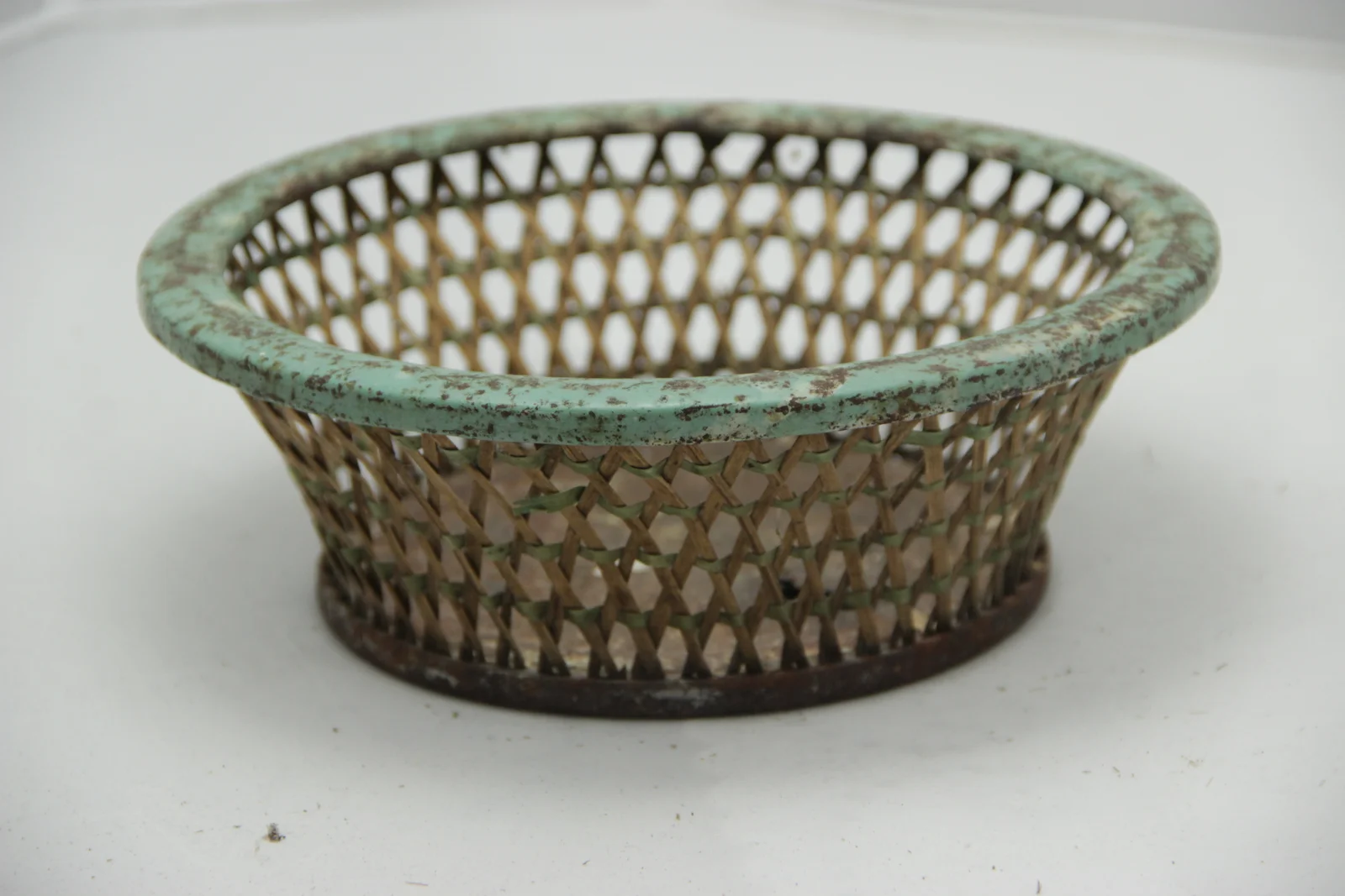 Anyag és technika: alja és fesőkarimája bádog, oldala nád