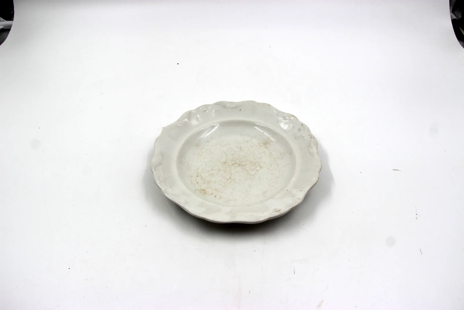 Leírás: Lapos. Pereme cakkos és domború mintákkal díszített.