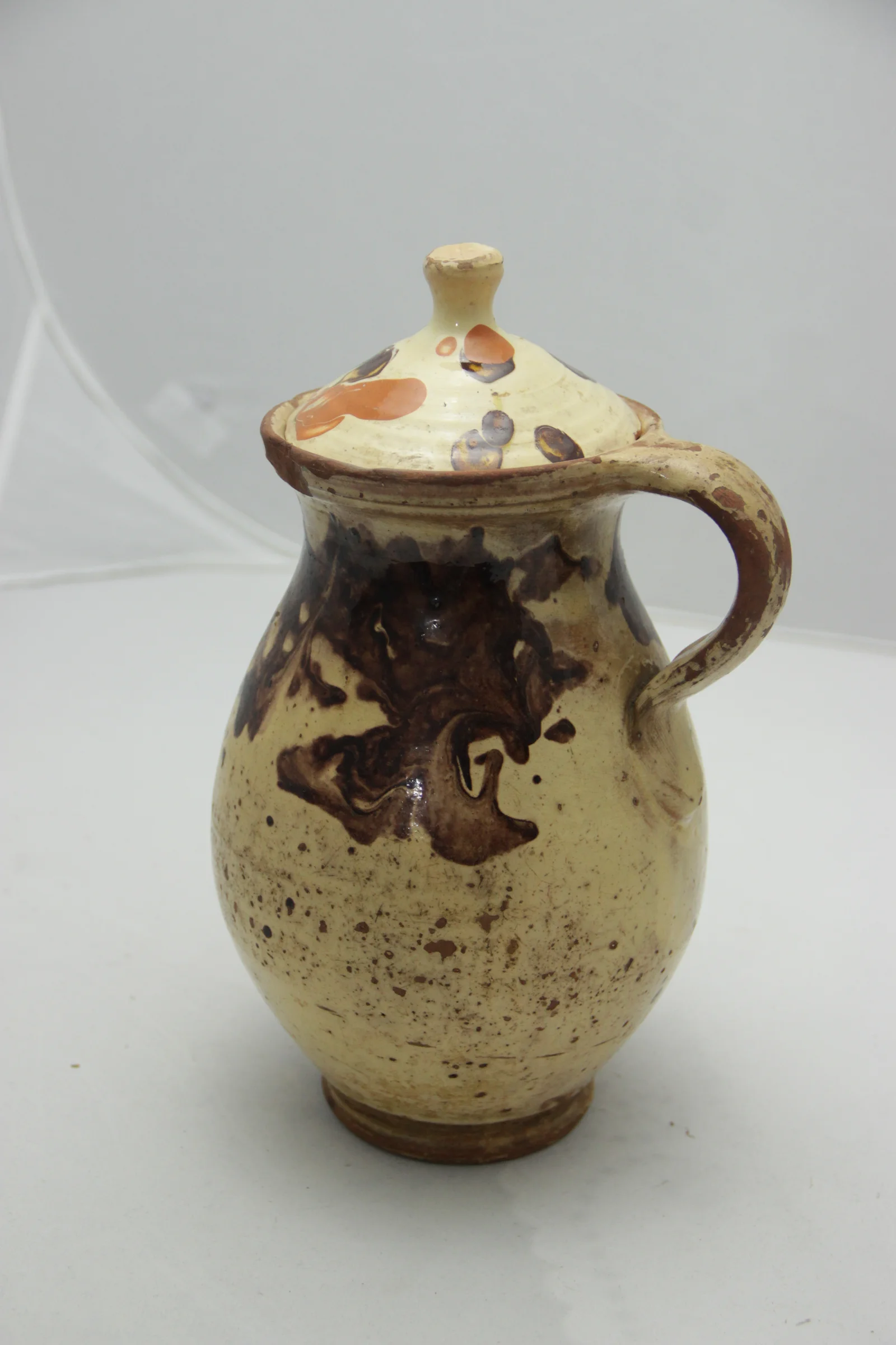 Leírás: Vajszínű, sötétbarna folyatott mintával.