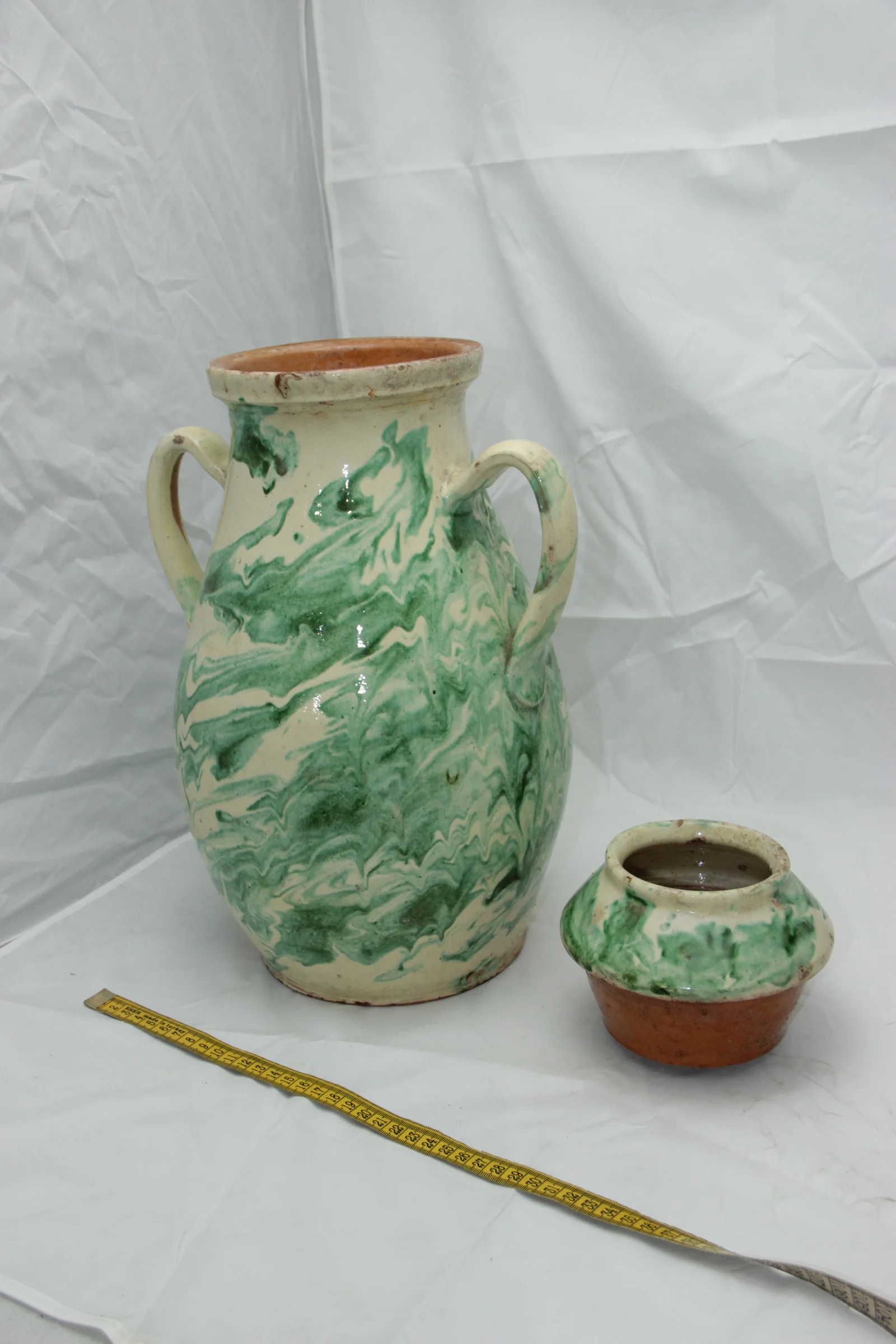 Méret: Köpülő: magasság 36,5 cm; szája átm. 15 cm; feneke átm. 16,5 cm. Kármentő: magasság 11 cm; 9,5 x 4,5 cm