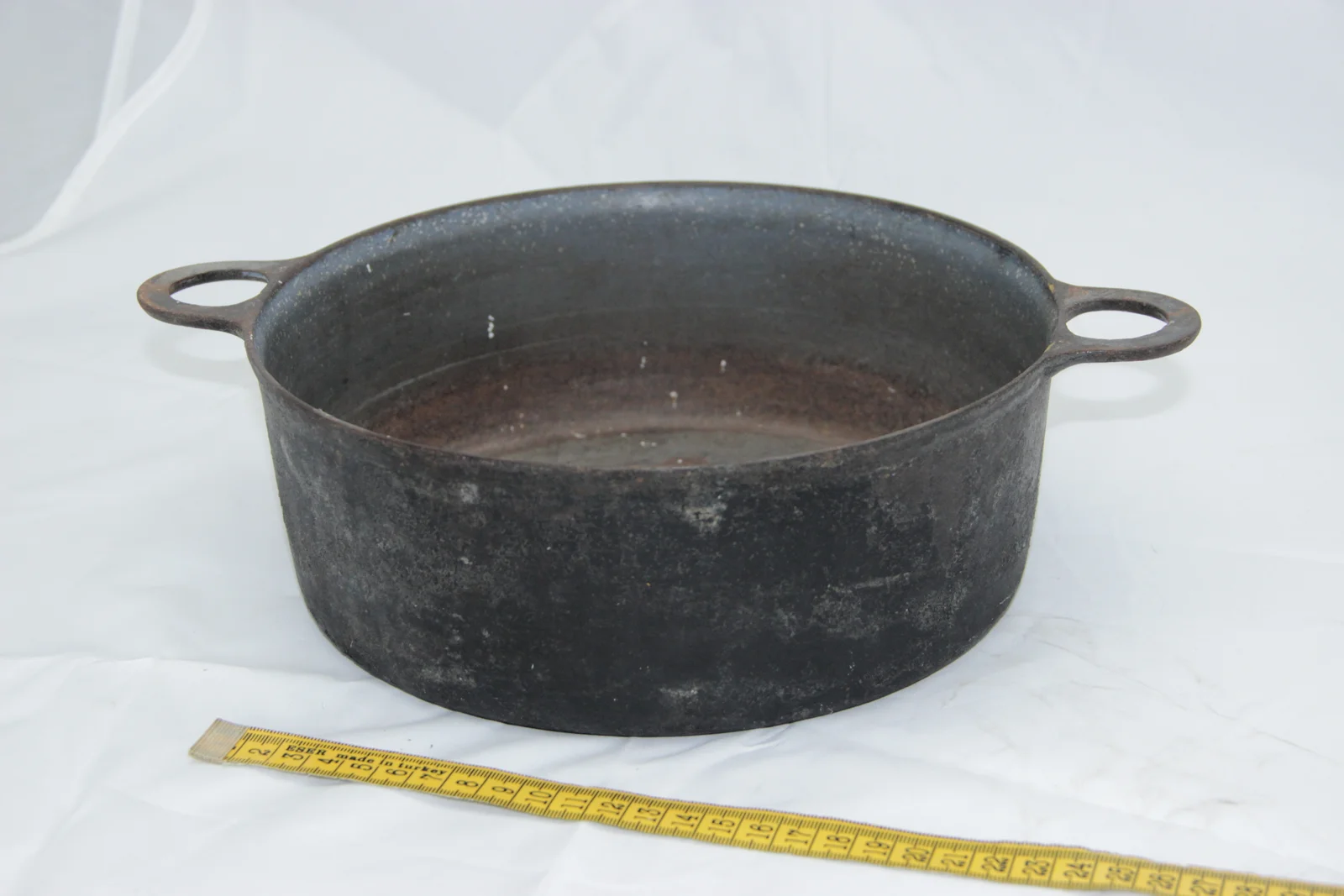 Méret: szája átm. füllel 31,5 cm; feneke átm. 22 cm