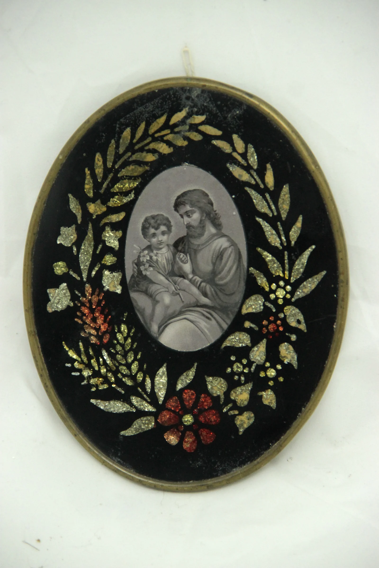 Megnevezés: ovális szentkép – Szent József a gyermek Jézussal