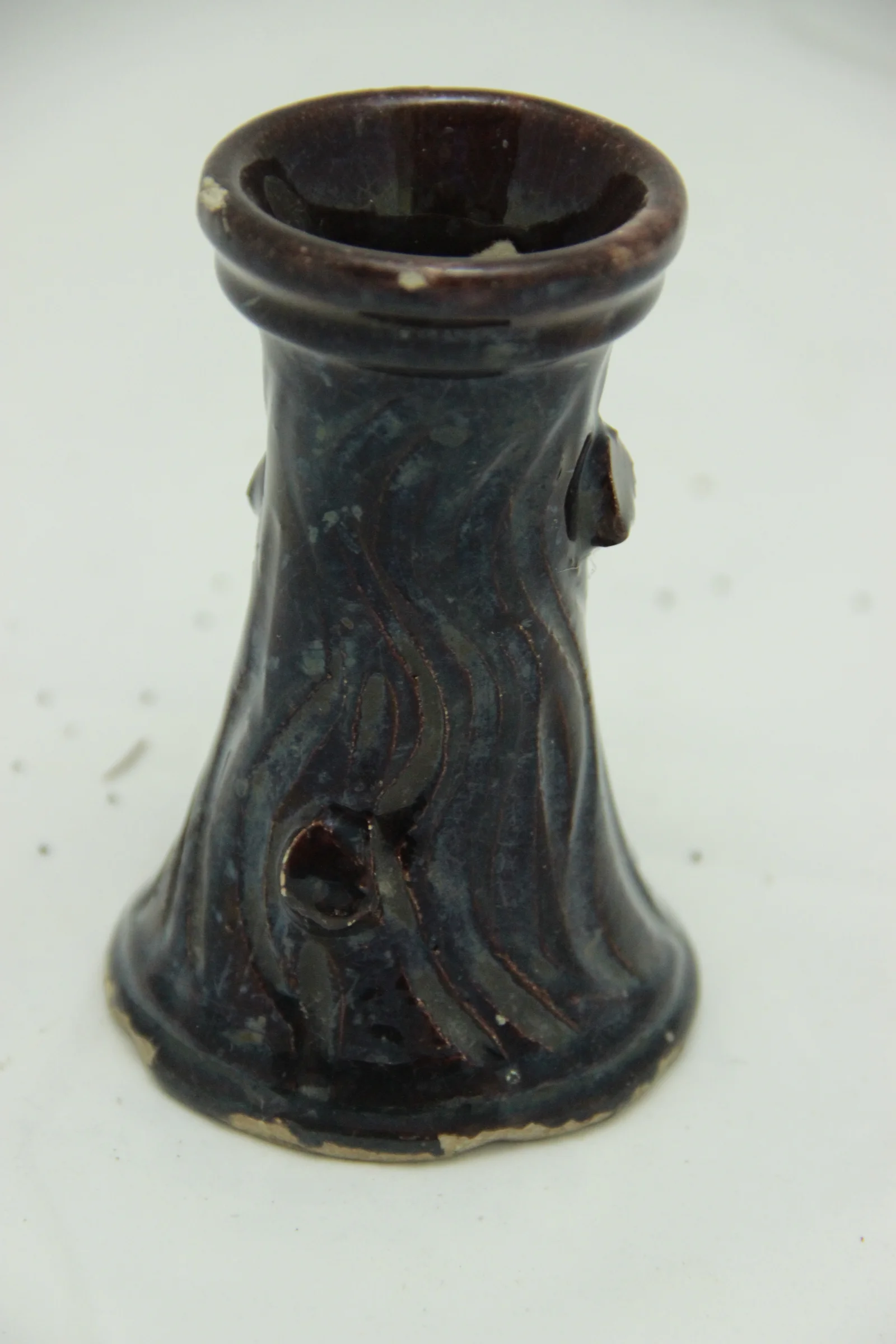 Leírás: Fatörzset imitáló váza. Előre bemázazták, így vajszínű lett a belseje, külseje sötétbarna mázzal fedett.