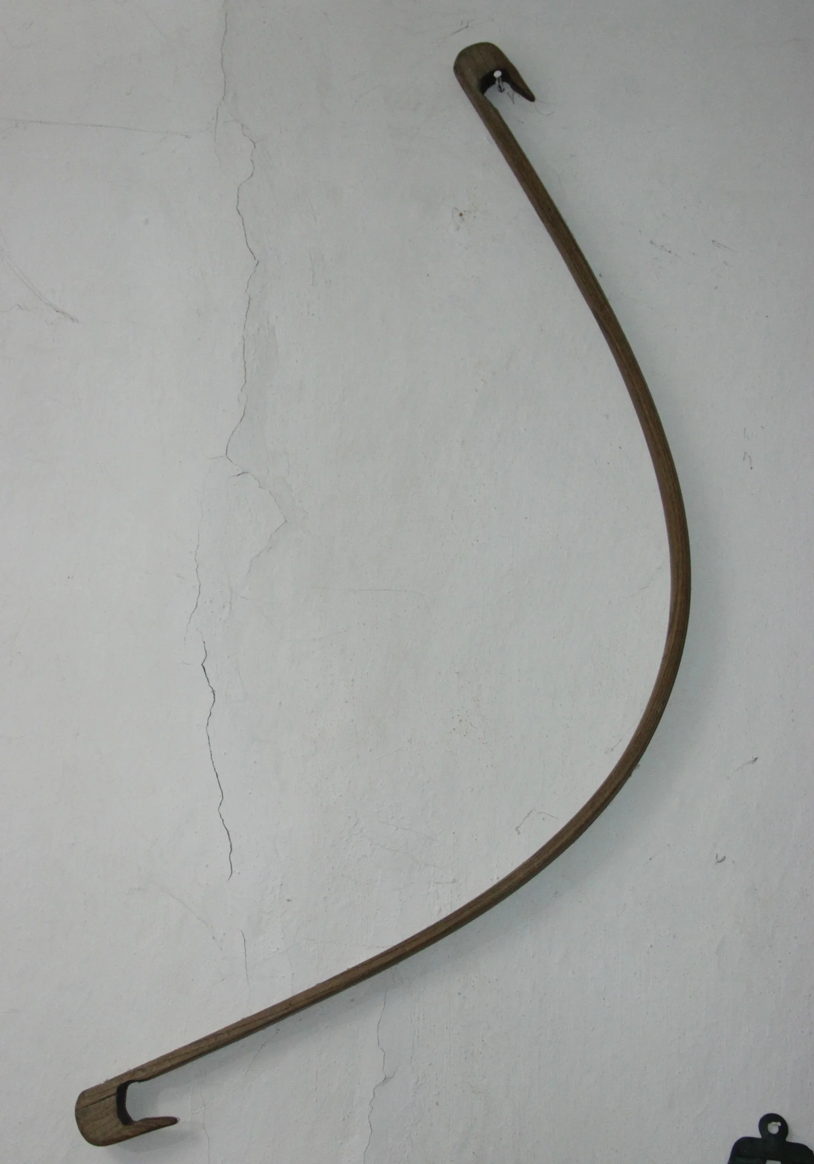 Leírás: Nagy ívben meghajlitott fa, kampós alakban kivágott véggel