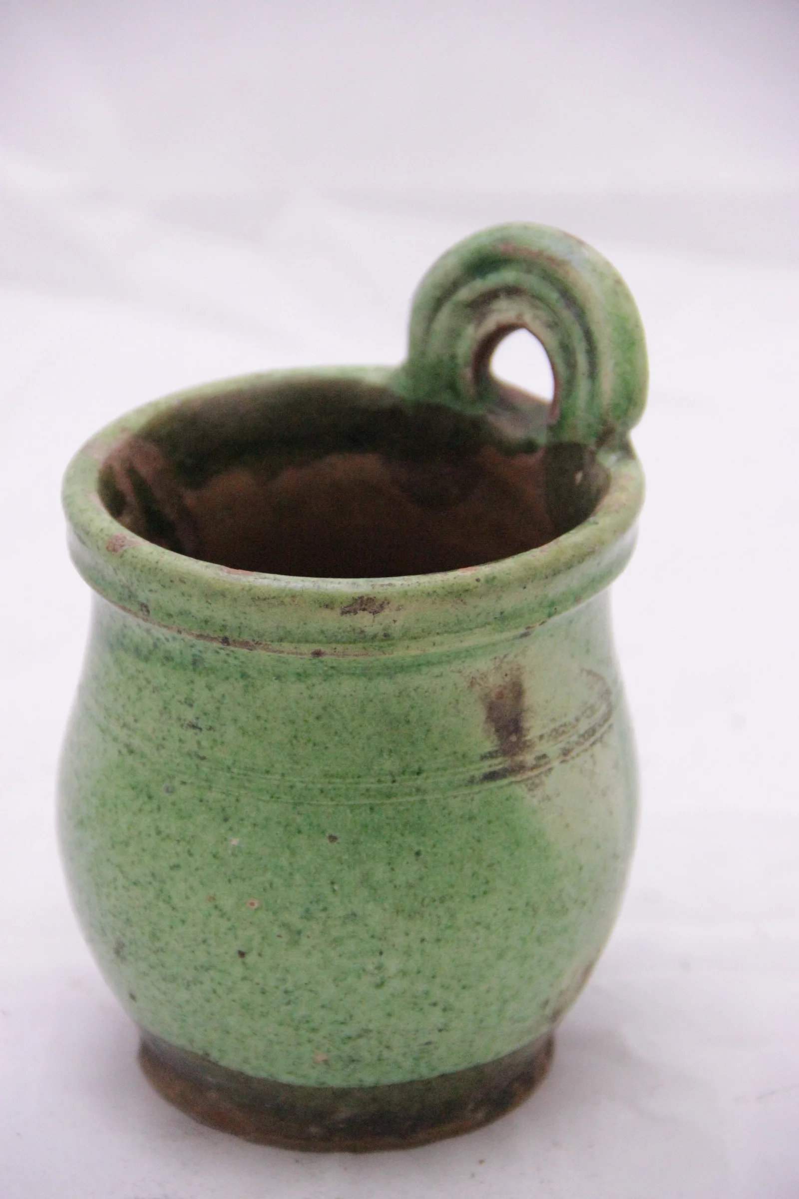 Méret: szája átm. 10,5 cm; magaság 16,5 cm; feneke átm. 8 cm
