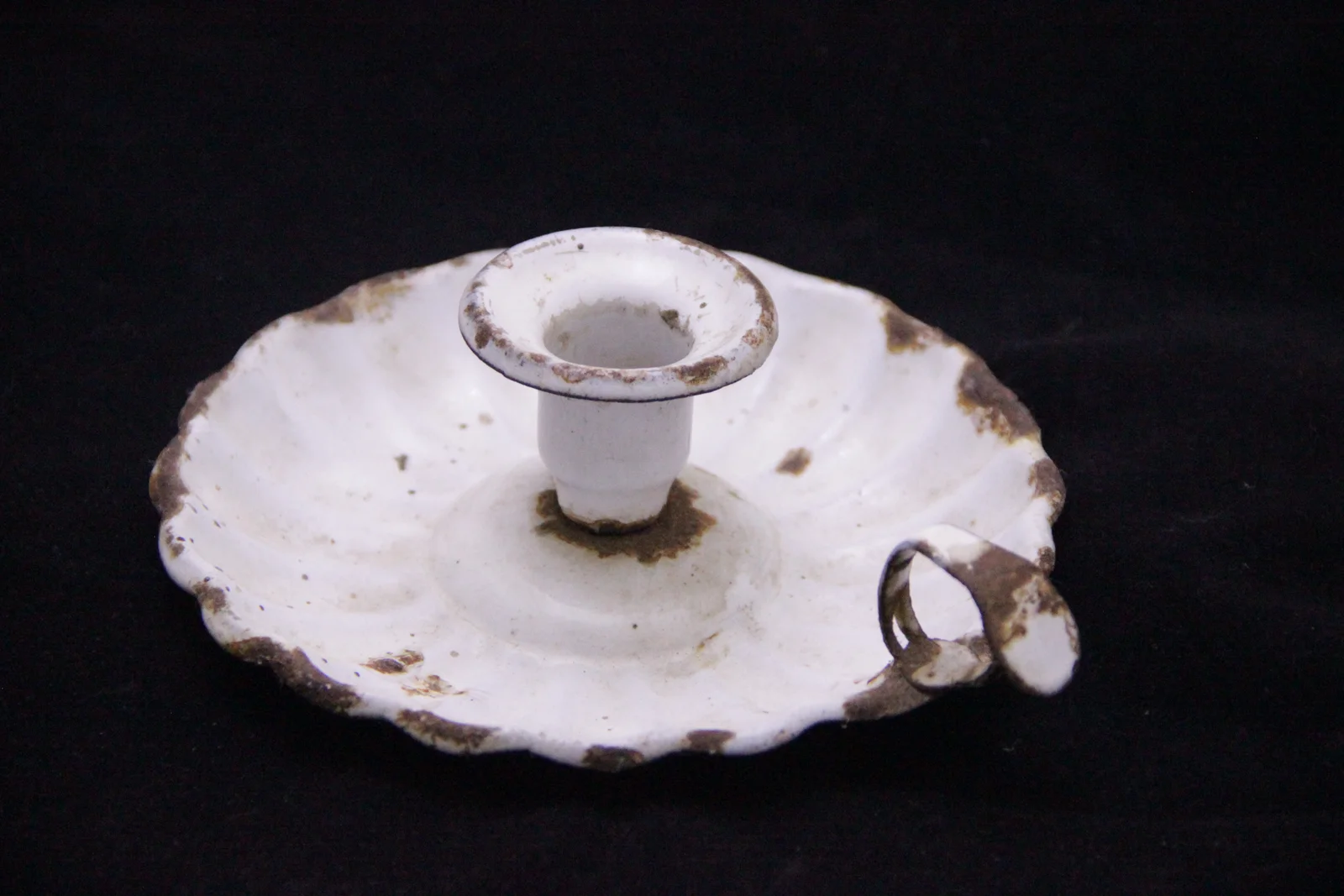 Leírás: Fehér zománcos. Egy kis foggantyúja van. Széle rozsdás.
