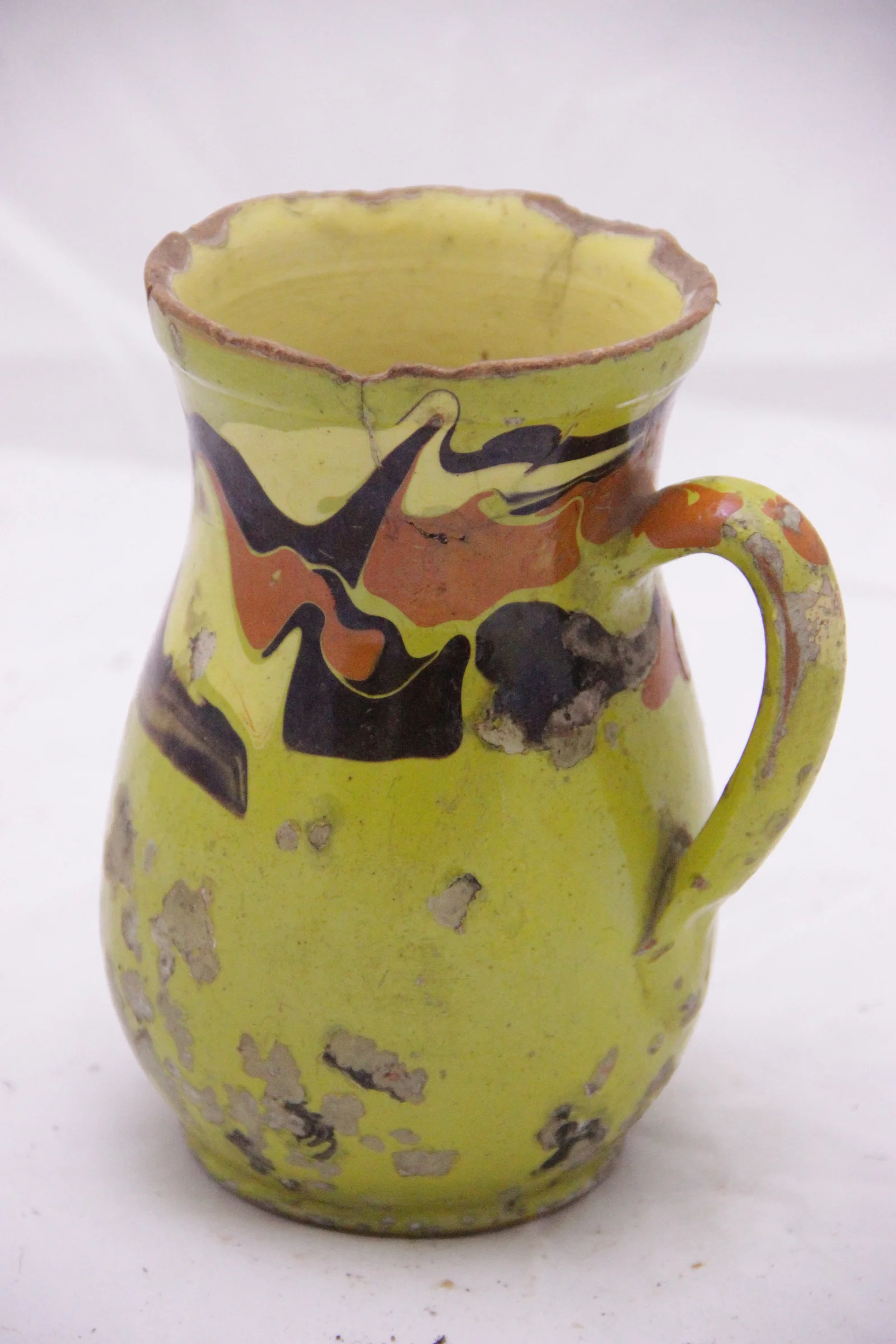 Leírás: Zöld alapon csorgatott díszítéssel.