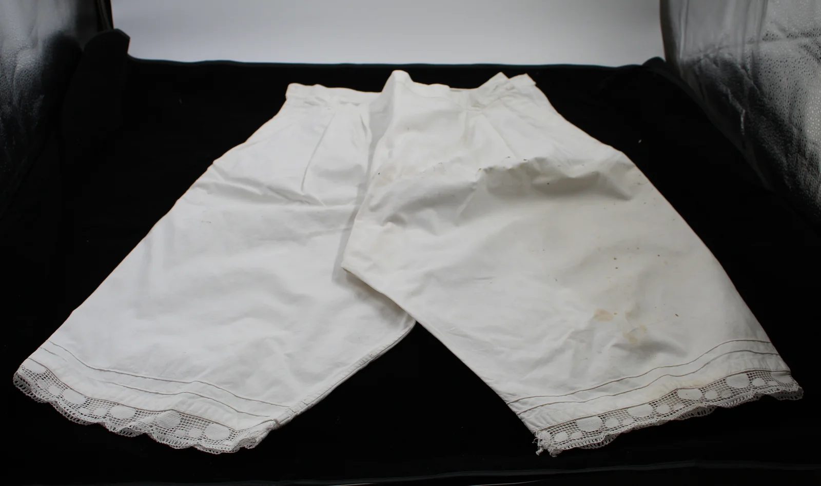 Leírás: Mindkét oldalán hasíték, amely gombbal záródik. Szárait 2 pié és gyári csipke díszíti.
