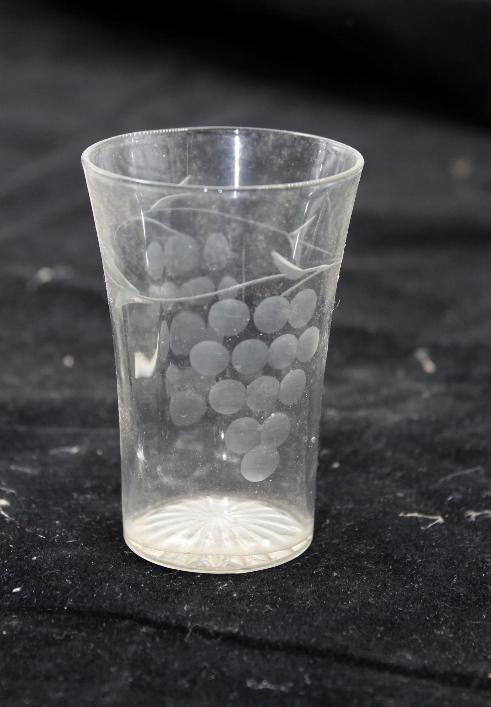 Leírás: Metszett szőlőmintás borospohár.