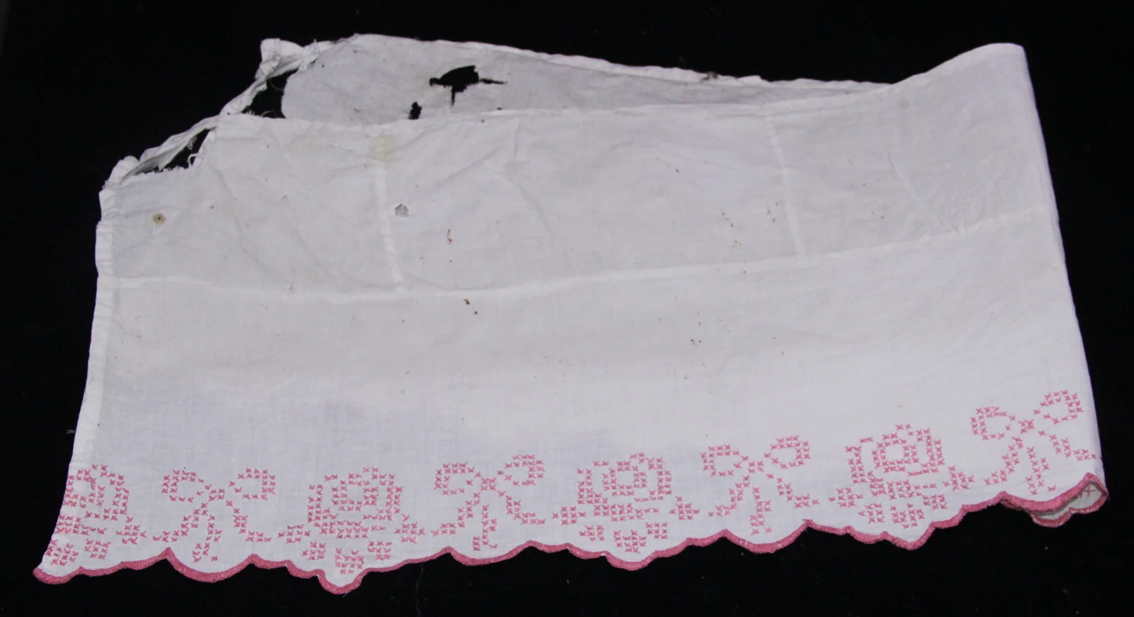 Leírás: Keresztszemes mintájú. Rózsaszin himzőszállal.
