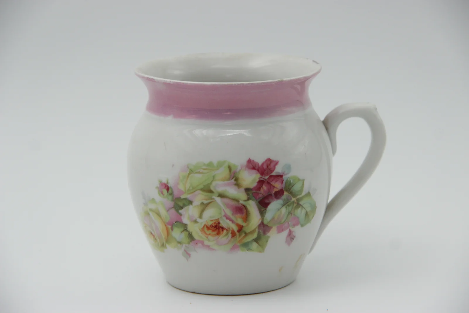 Leírás: Rózsás mintájú, egyfülű, a szájperem alatt rózsaszín sávval.