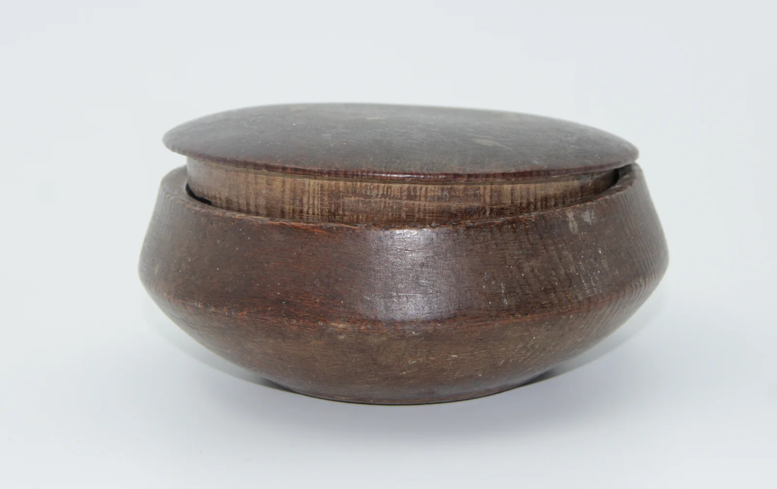 Leírás: kerek fedeles fa doboz