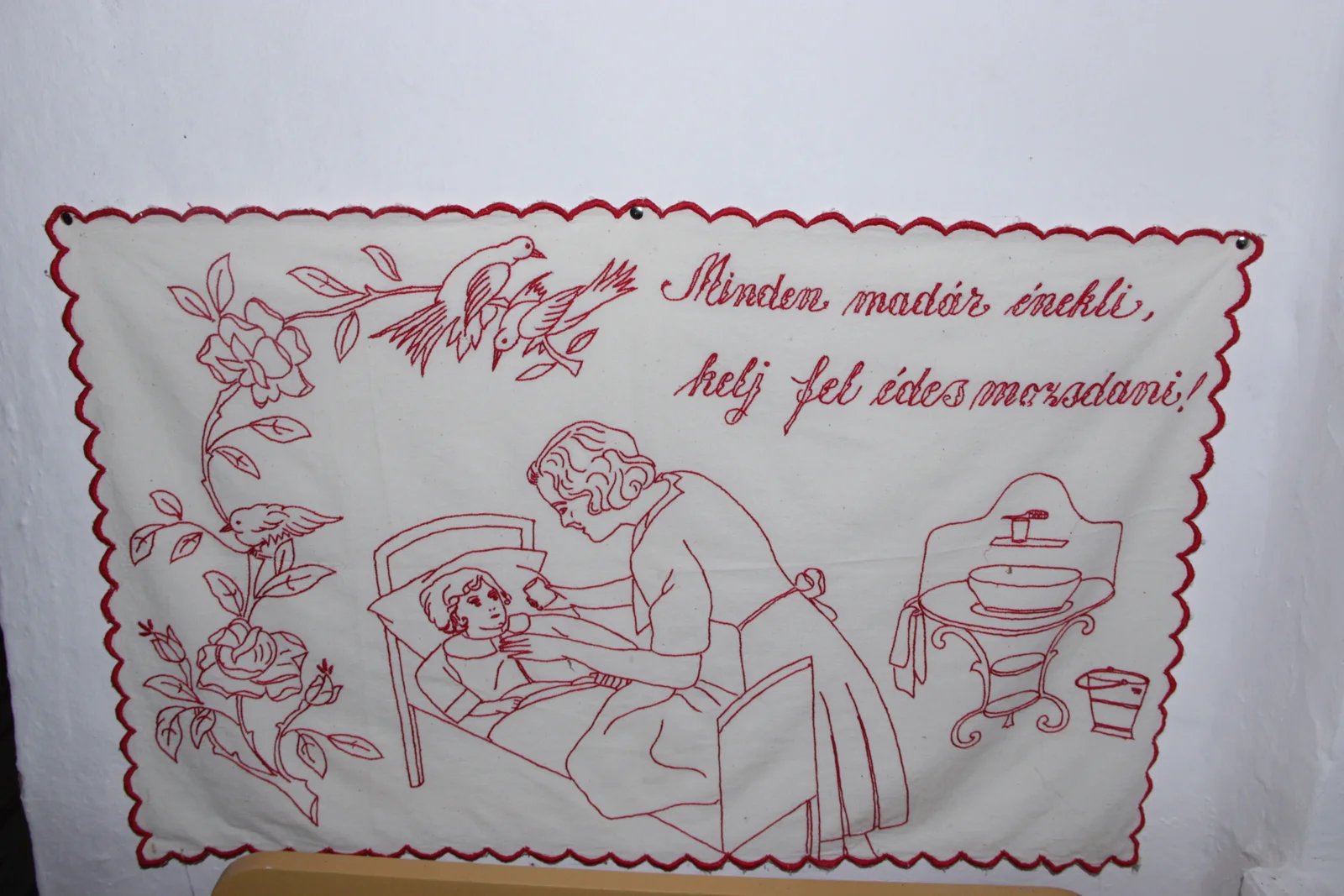 Leírás: Felirata: Minden madár énekli kelj fel édes mosdani!