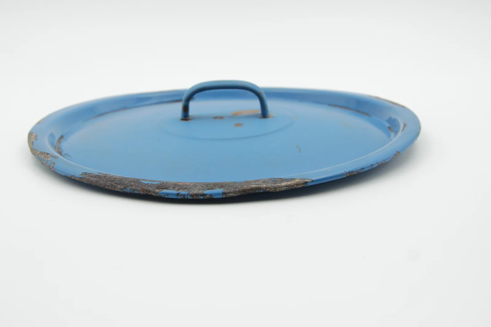 Leírás: Kék zománcos, sérült.