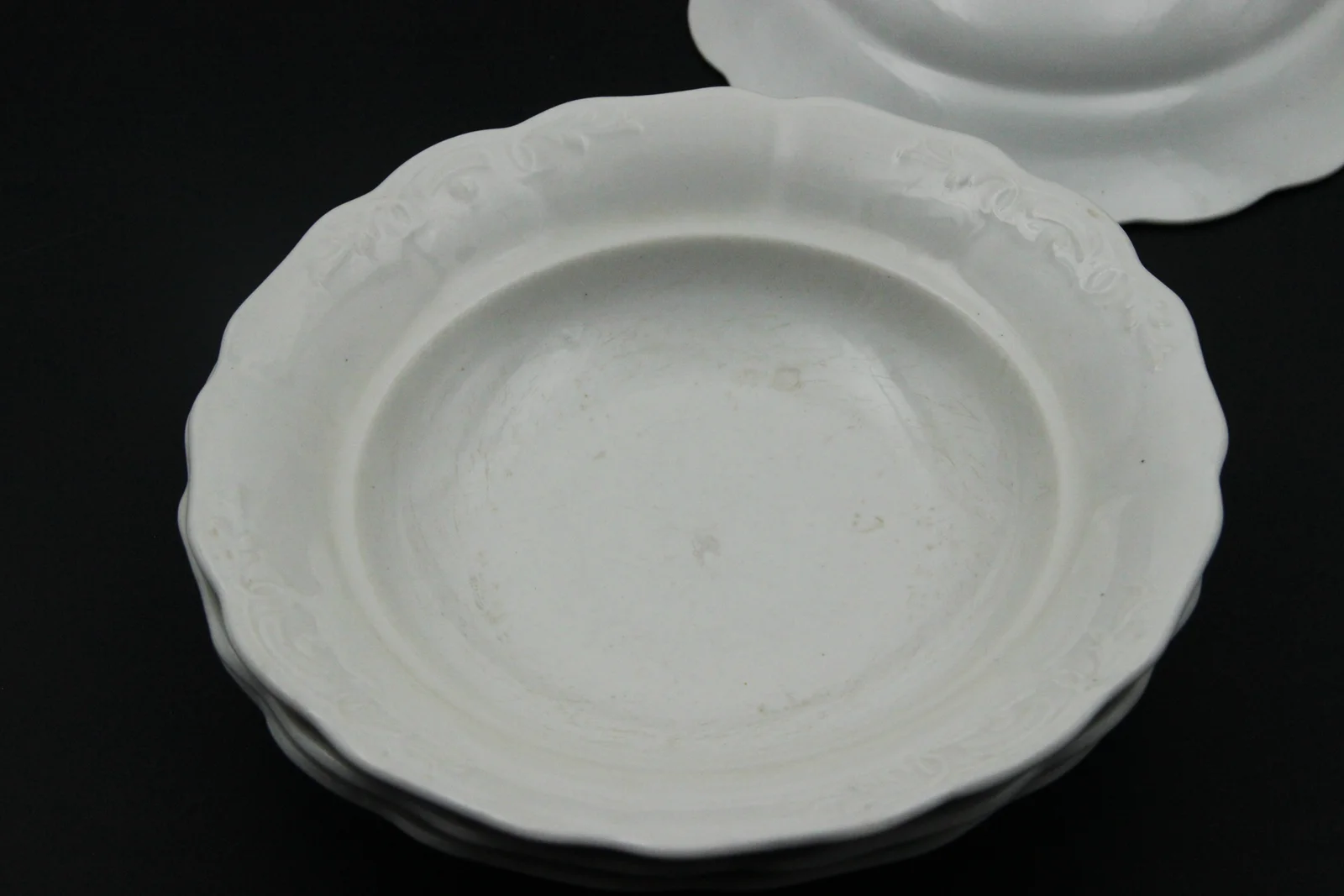 Leírás: Fehér, hullámos szélű, nyomottmintás. Fenékjegye: KP és egy leveles ág