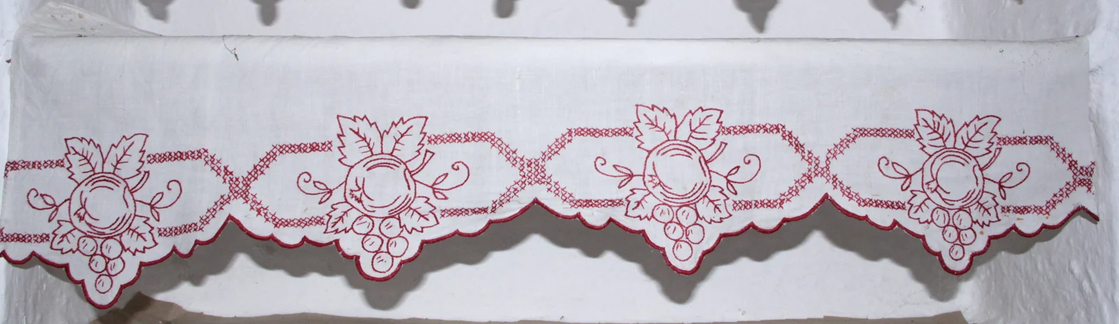 Anyag és technika: fehér vászon, hímzett