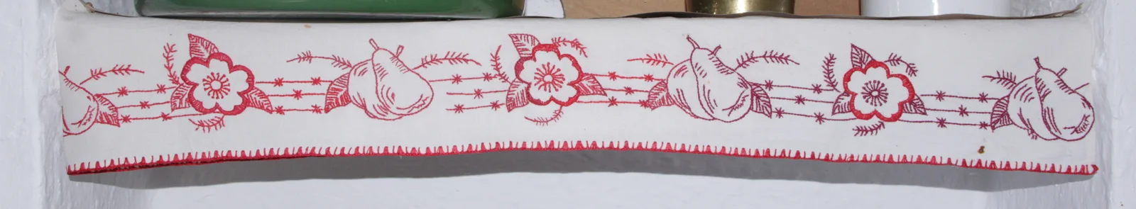 Anyag és technika: fehér vászon, hímzett