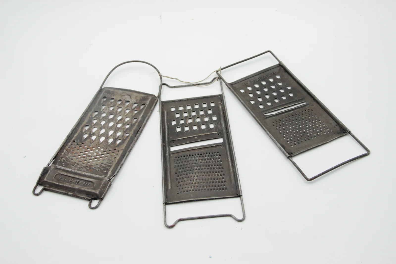 Leírás: erős fémdrót-keretre ráillesztett lyuggatott lemez alma, uborka reszelésére