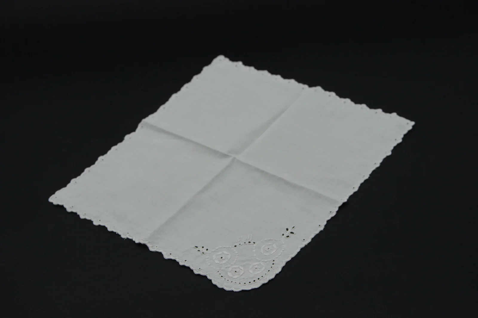 Anyag és technika: fehér vászon, hímzett