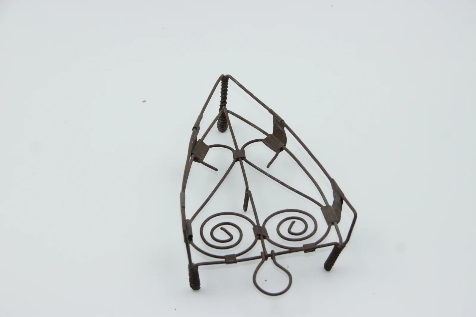 Leírás: Görbített drótból kialakított, kis lábakon áll.