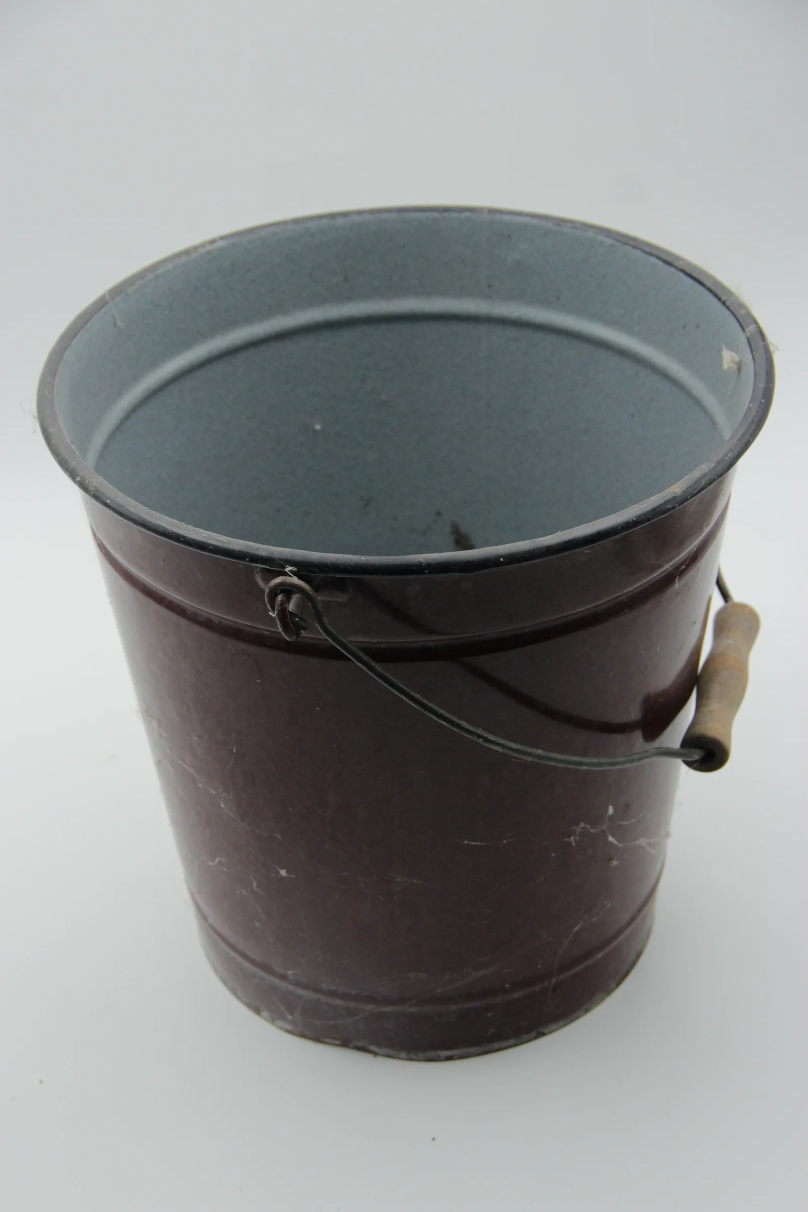 Leírás: Barna zománcos vödör, fenékjegye 2 oroszlános pecsét és egy csillag