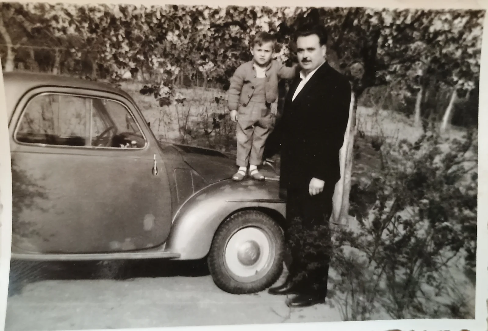 Sánta Zoltán és ifj. Sánta Zoltán egy Opel Olympia mellett