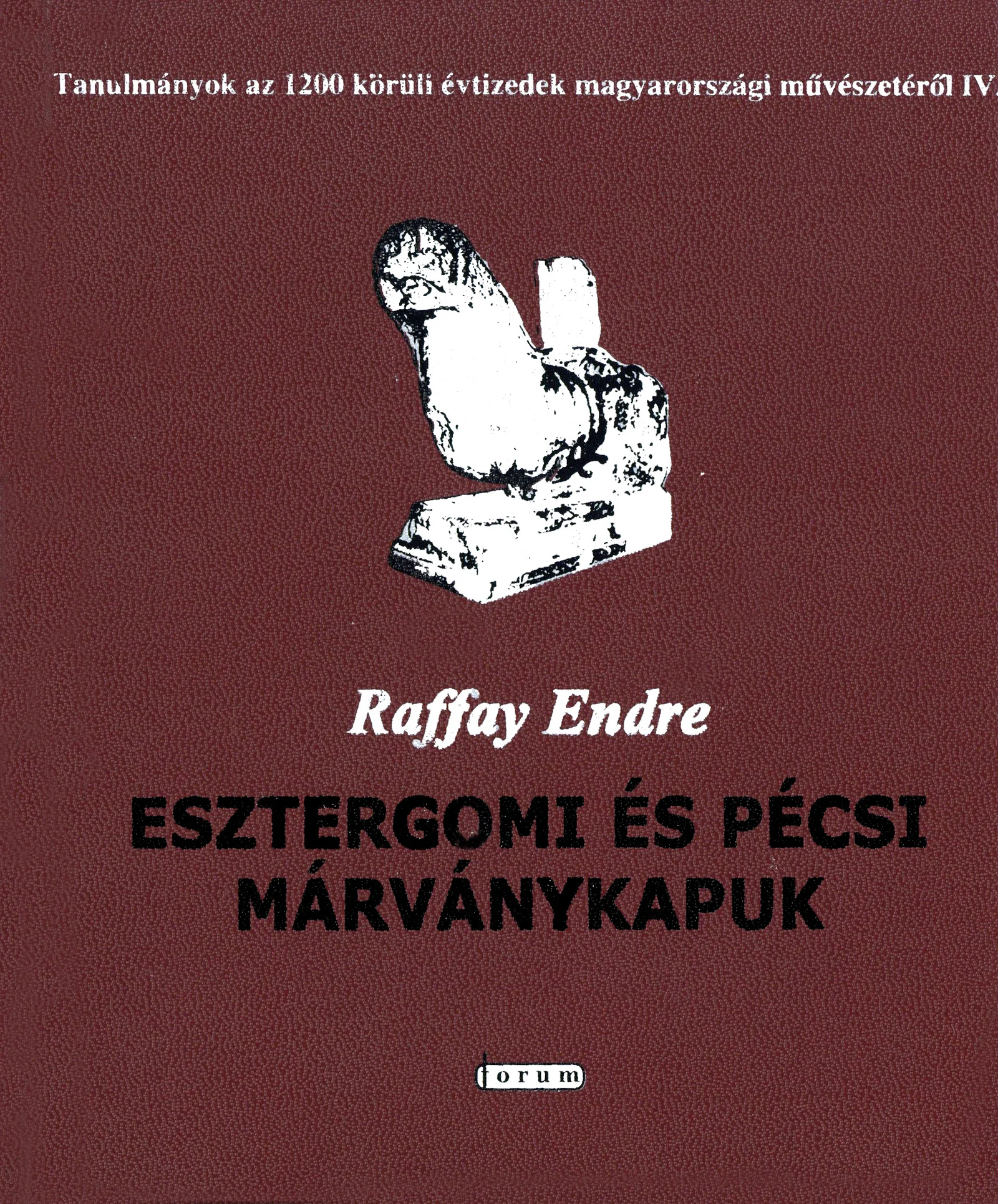 Ez a könyv az 1200 körüli évtizedek magyarországi művészetének emlékeivel foglalkozó Forum-sorozat negyedik kötete. A kötet három, angol nyelvű összefoglalóval ellátott tanulmányt tartalmaz, amelyek márványkapukkal foglalkoznak: az egykori esztergomi érseki székesegyház 1764-ben elpusztult, csak képi és írott források, valamint a töredékeinek a segítségével vizsgálható főkapujával, a Porta speciosával és a pécsi püspöki székesegyház főbejáratával, amelyet az eredeti helyéről a templom XIX. századi újjáépítésekor kibontottak, és utóbb kőtárban állítottak fel. Az előbbinek feltételezhetően volt egy párja, amely az érseki székesegyházba déli oldali bejárást biztosíthatott. A pécsi kapu székesegyházi társairól (egy északi és egydéli kapuról) pedig biztosan tudunk: egykori létezésükről felmérési rajzok tanúskodnak. Ezek a kapuk szintén márványból készültek. Éppúgy, mint az ugyancsak pécsi, Jákob-feliratos lap is, amely talán a kőtárban megőrzött kapu tervezett elődjéhez készült.